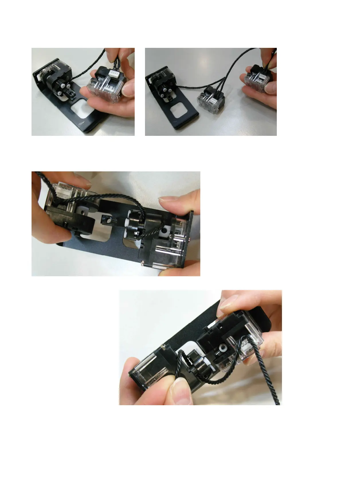 STEP5. ConnectJoint Frame” with ID03 by using 3s rivet. Then, rotate W Cable1~2 times and fix it.