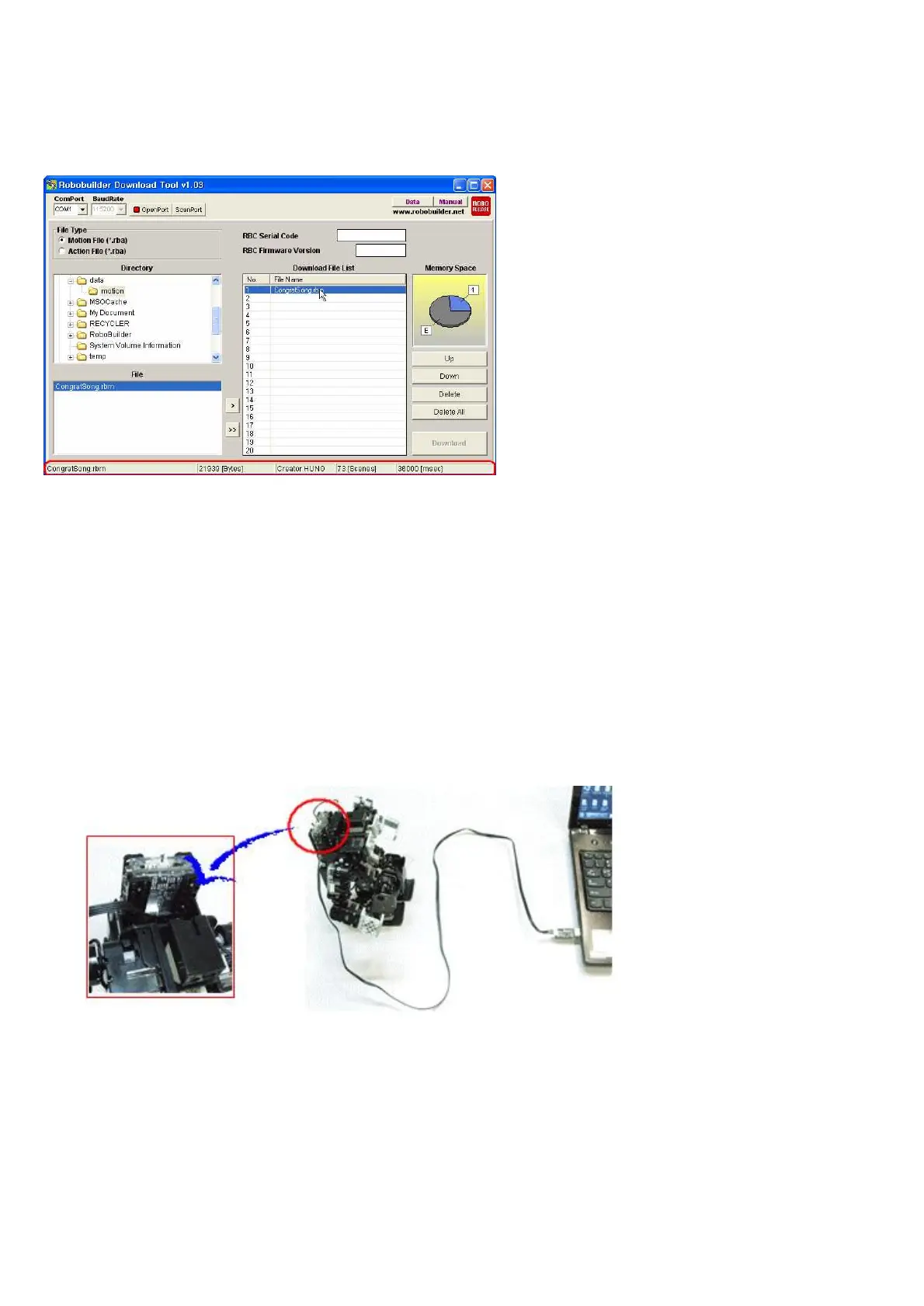 If you click a file in the Download File List, it shows file name, file size, robot platform, scene number,