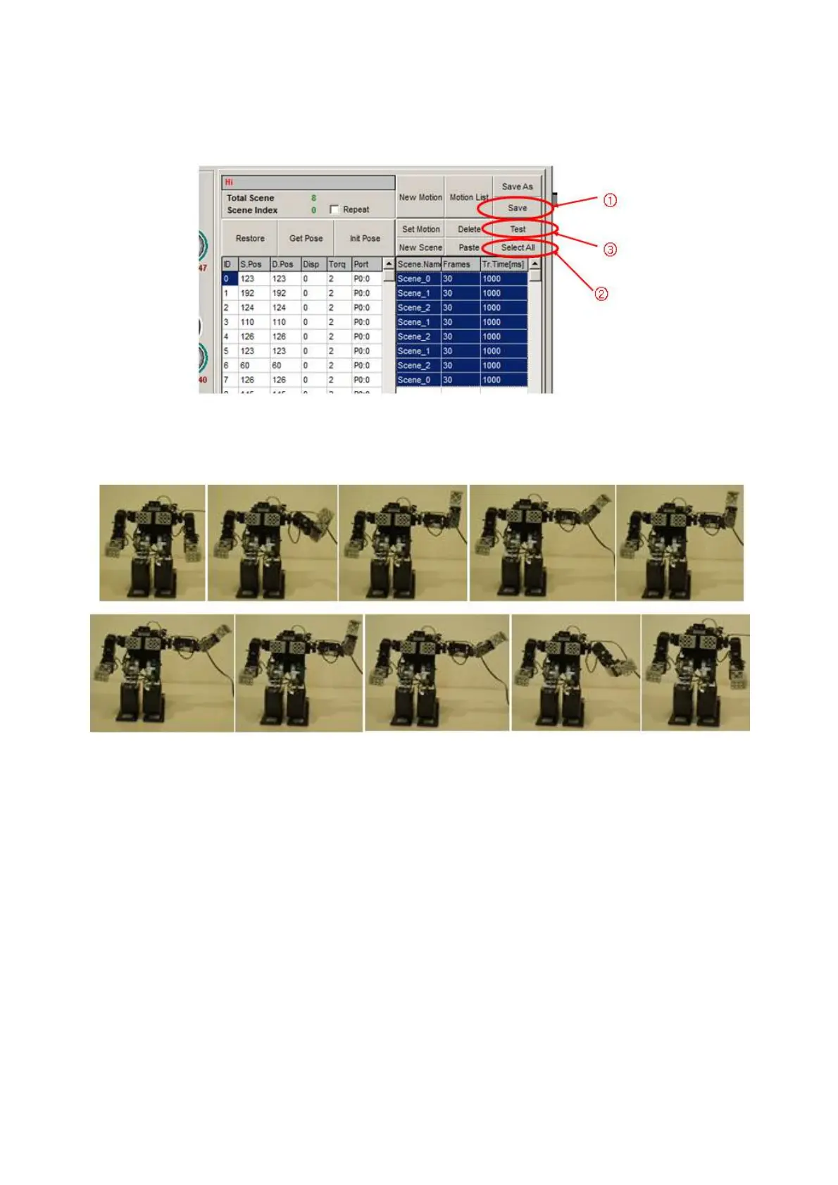 14) Save the Motion file, Click “select All” and then click “Test” button.