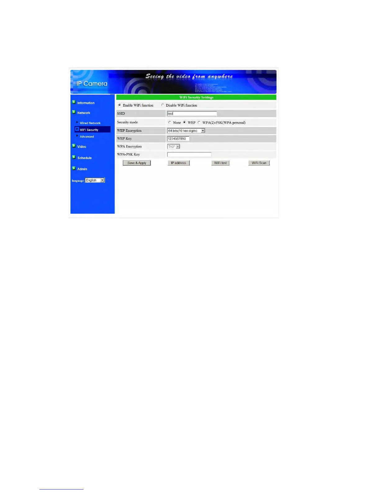 You can click the “WiFi test” button to check if the IP CAM can connect to the