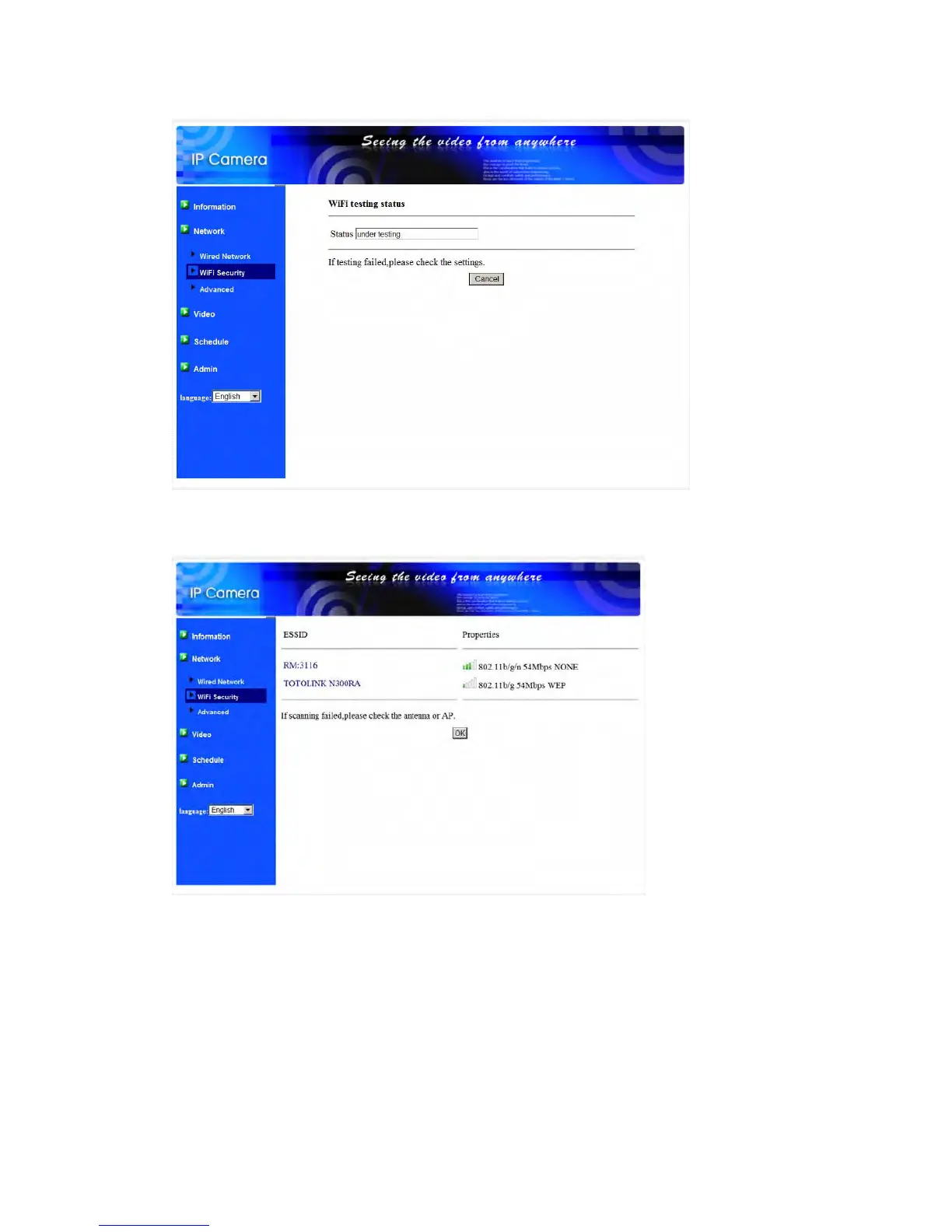 Figure 3-10: WiFi scan page