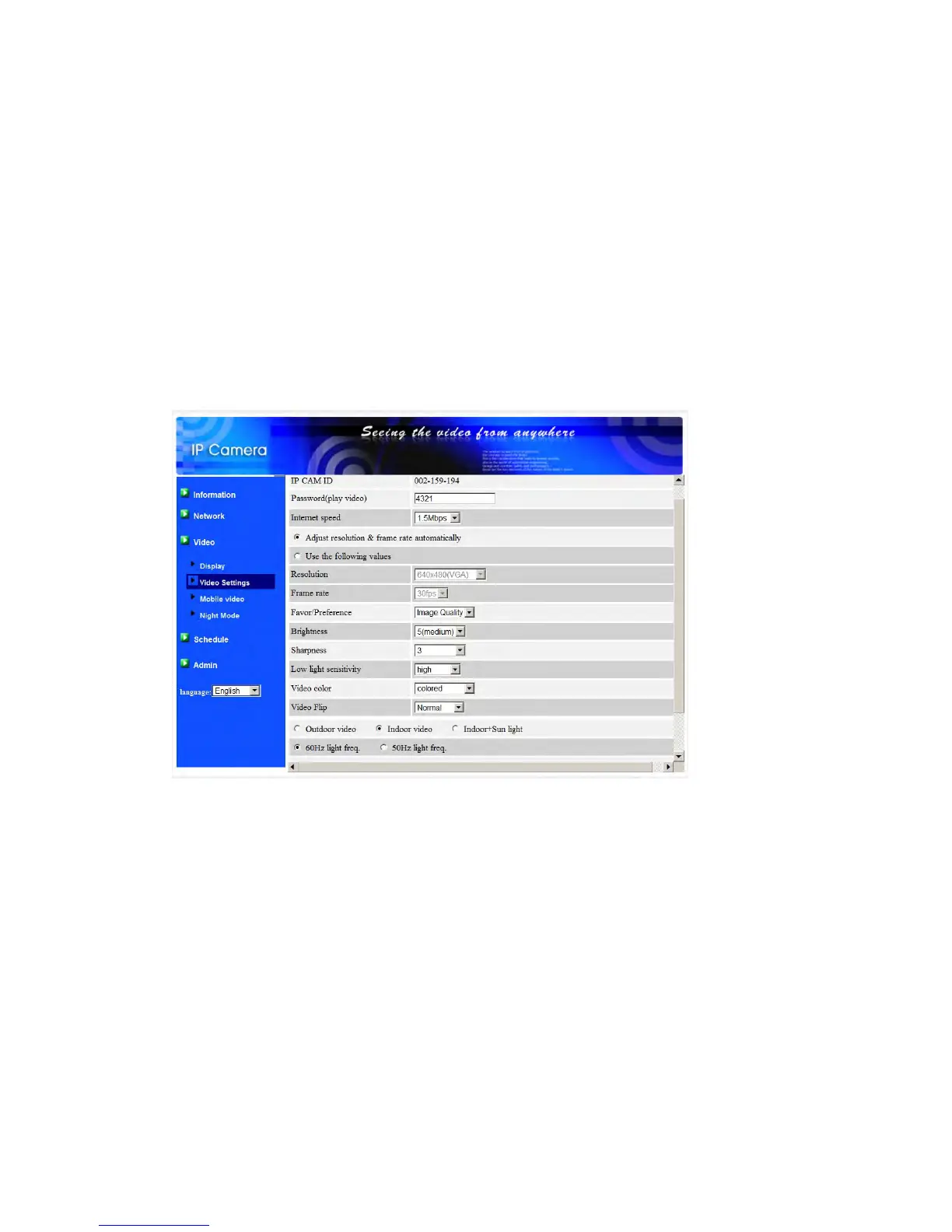 Figure 3-12: Video settings page
