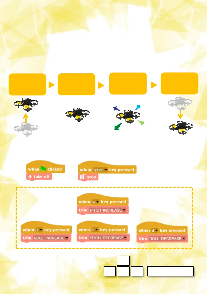 ① take-off ②hoverring observation ③ fine adjustment ④ stop