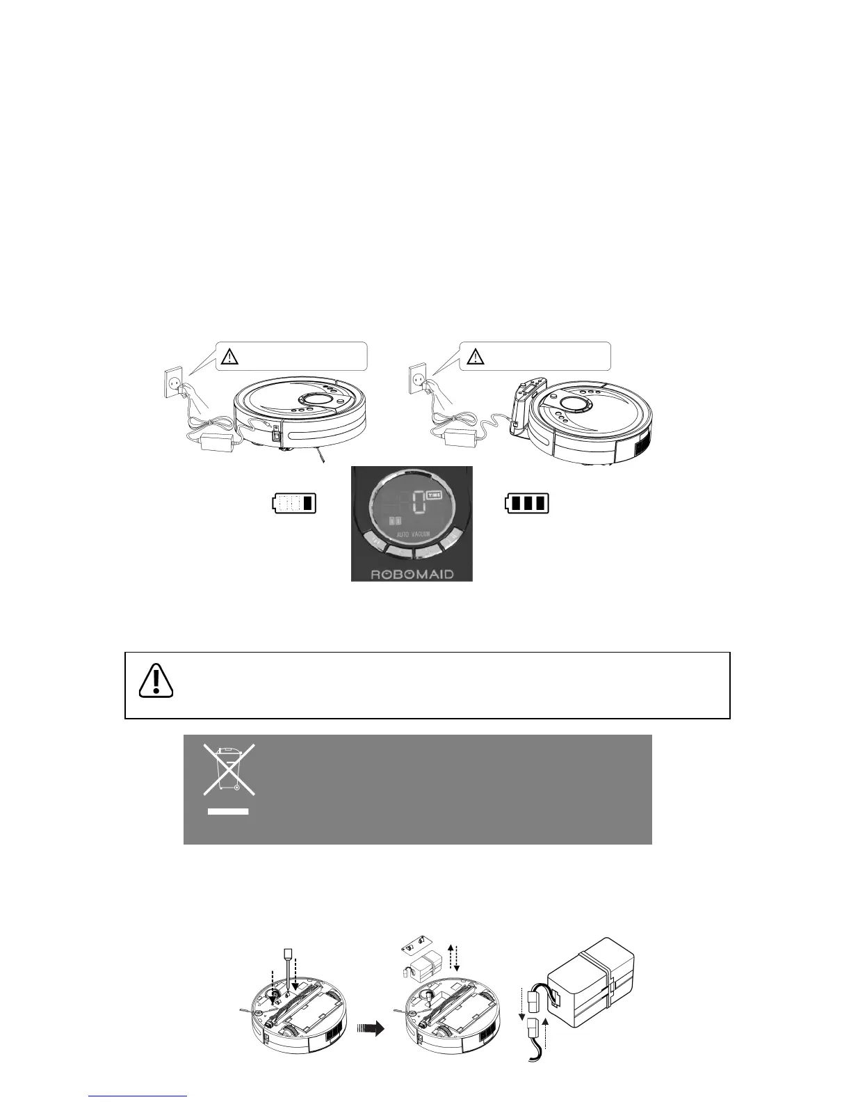- The Robomaid will enter Standby Mode if the power supply is cut o during the charging process and