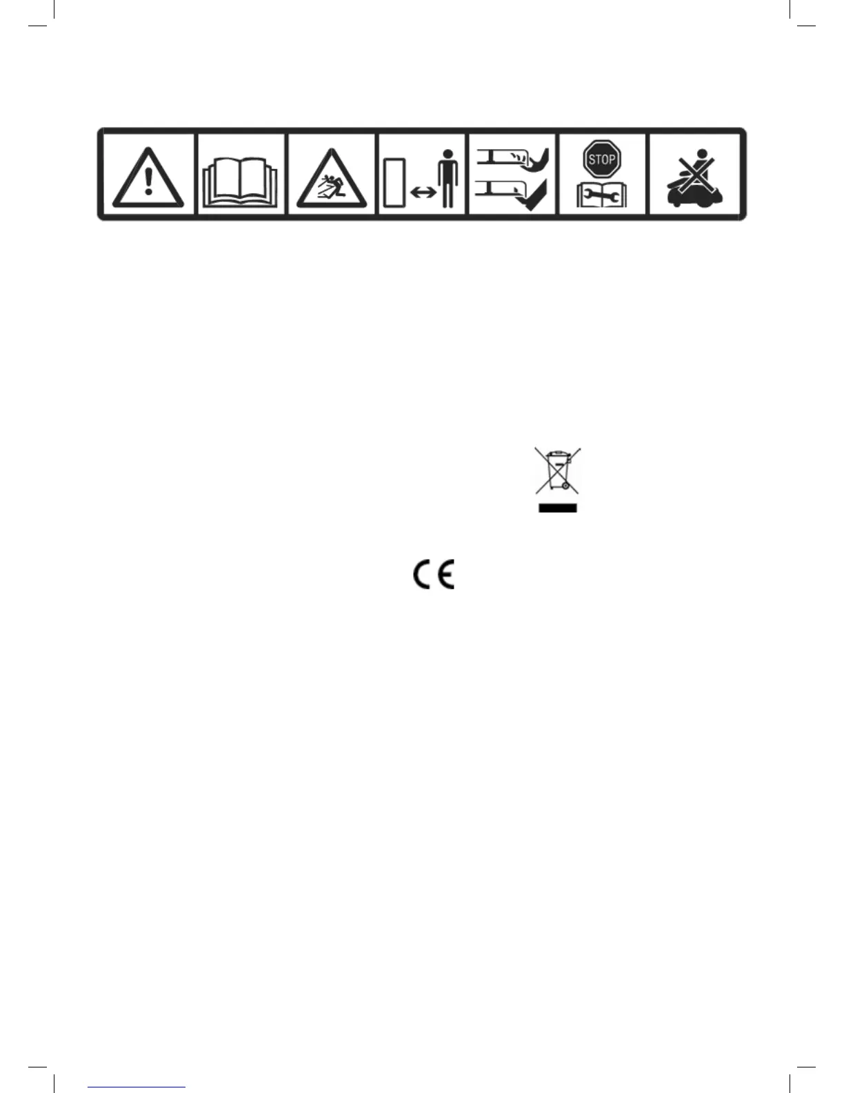 Severing of toes or ngers – Rotary mower blade. Risk of injury from rotating cutting blade. Keep hands and