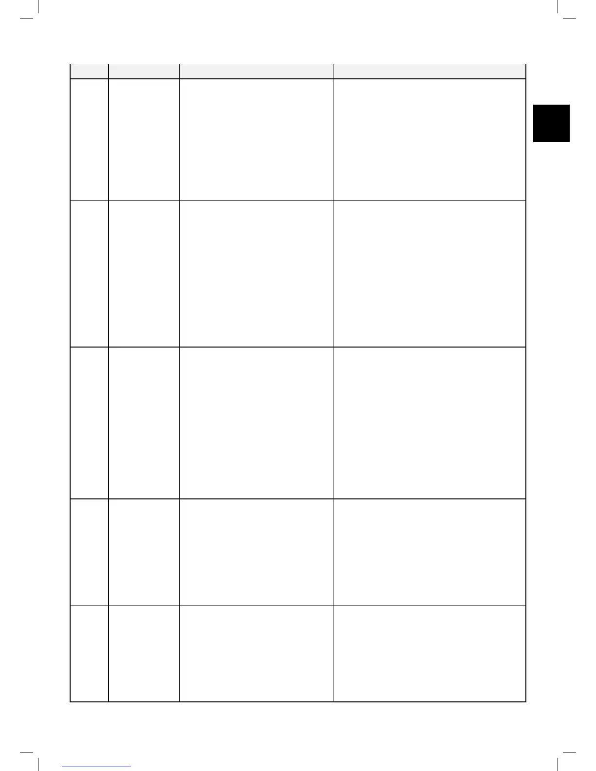 The following table displays all Error Codes and gives possible causes and corrective actions: