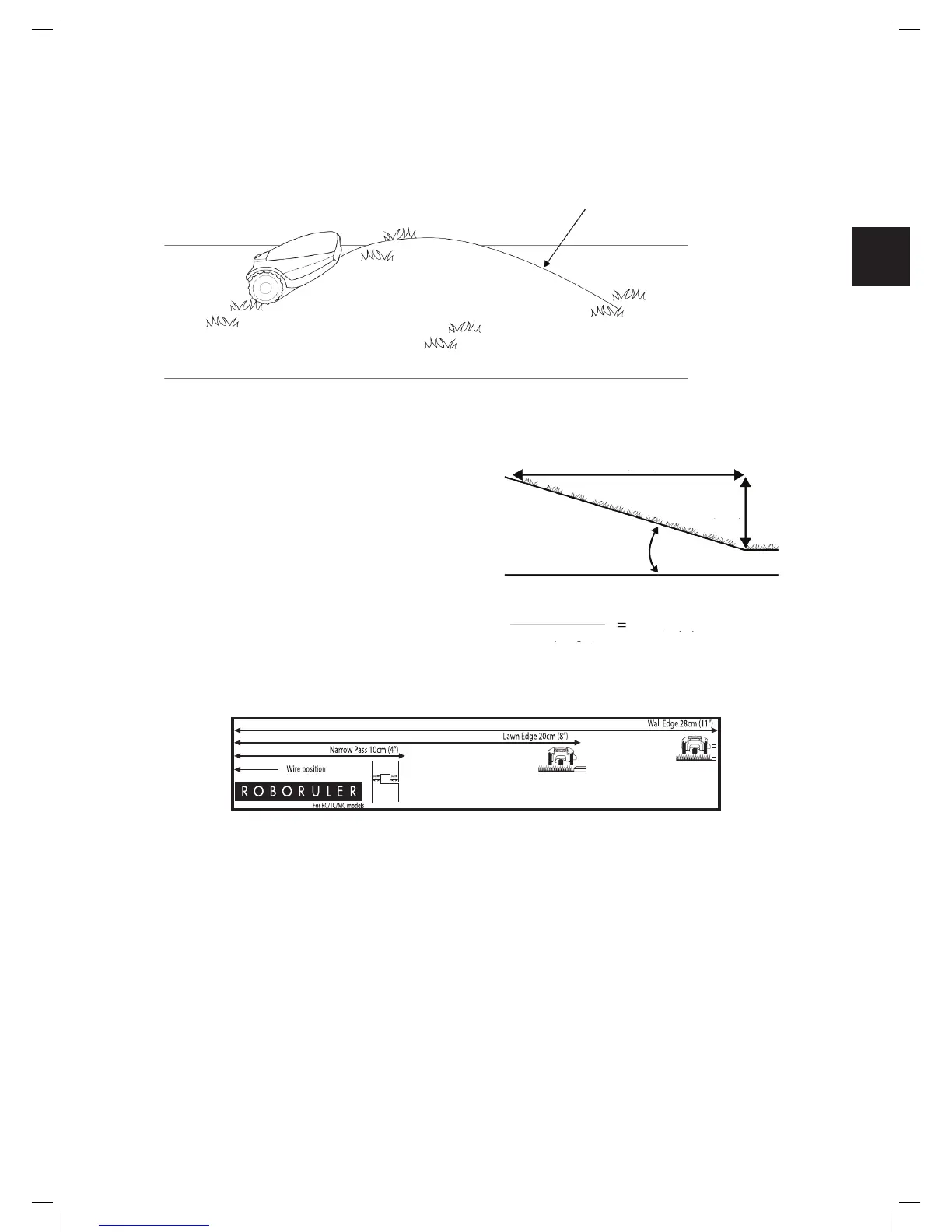 Tip: If the mower tilts off the ground while climbing a slope, it is too steep. Exclude this steep area from