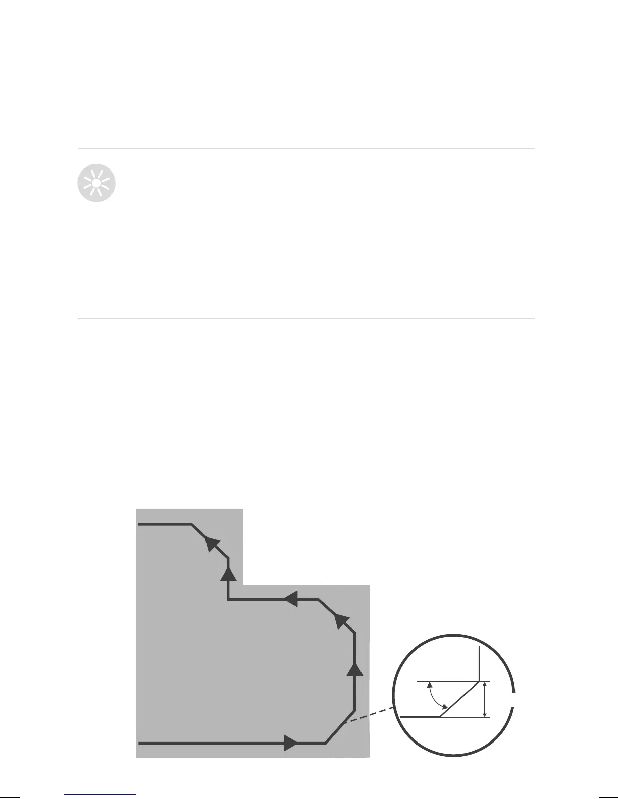 Maintain a 45° angle at all left-turn corners when laying the