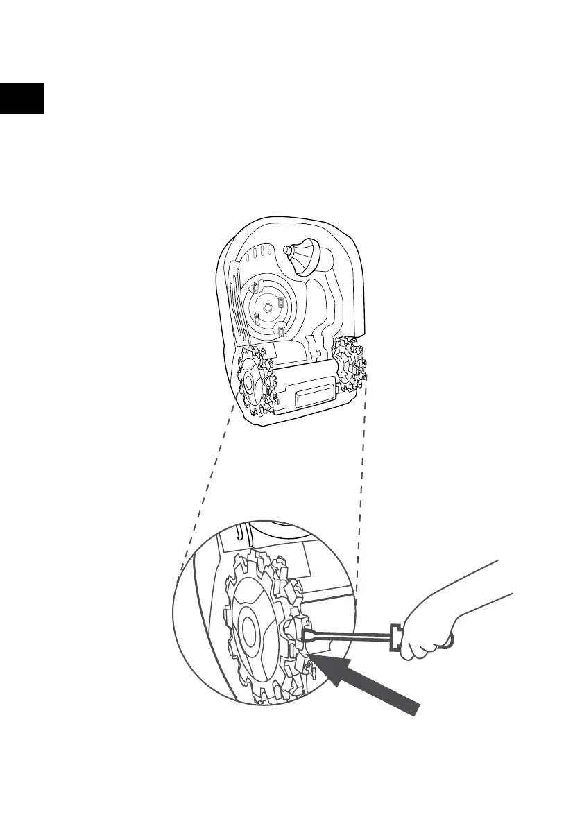 The RK wheels and deck are self-cleaning. Accumulated grass, soil and debris