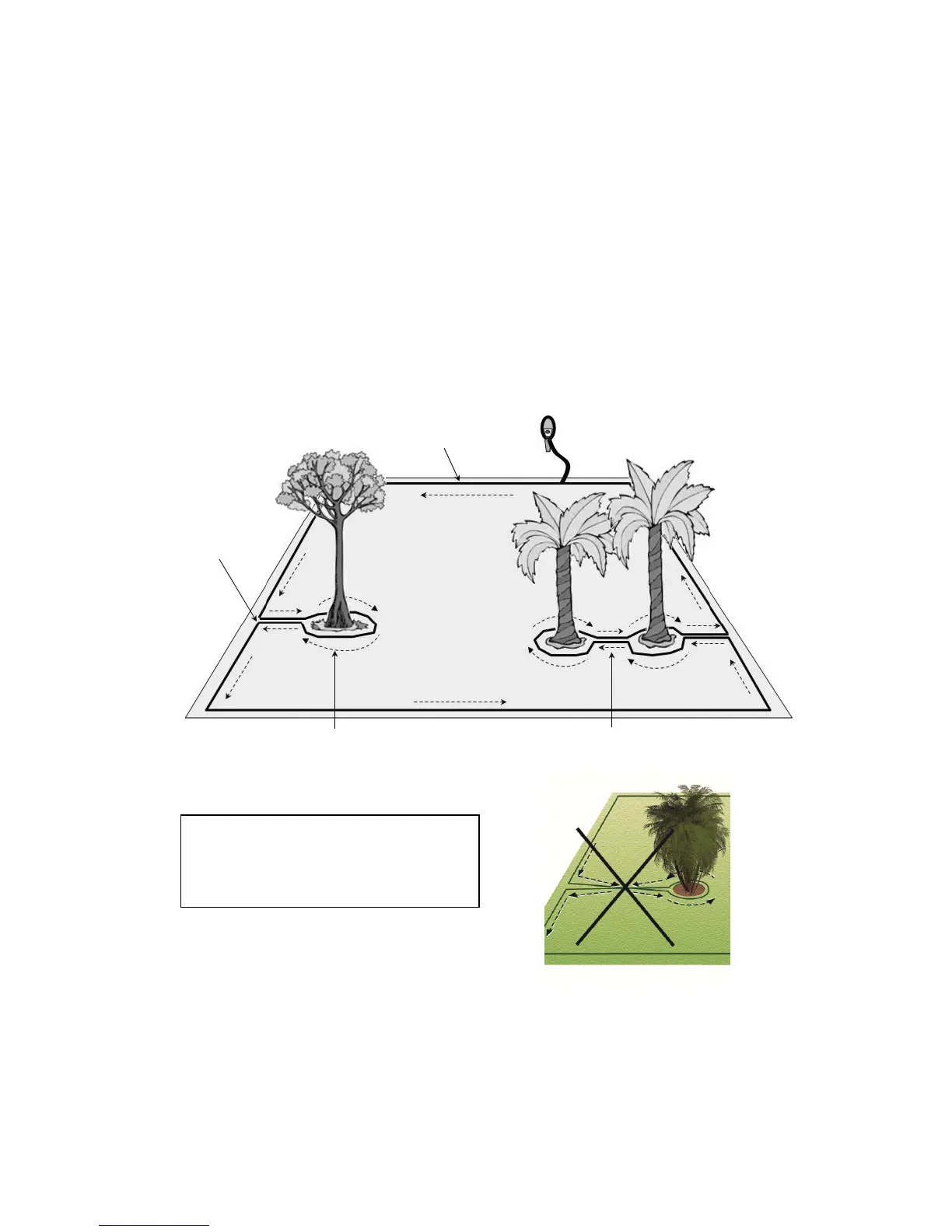 Other obstacles such as, flowerbeds, fountains and small trees, must be protected from the