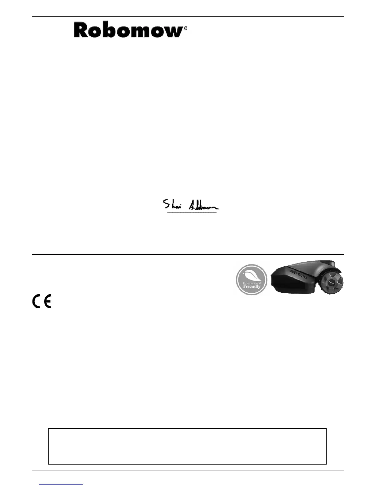 lawn. When set up and used properly, Robomow will operate safely on your lawn and provide you with a quality of cut matched by a