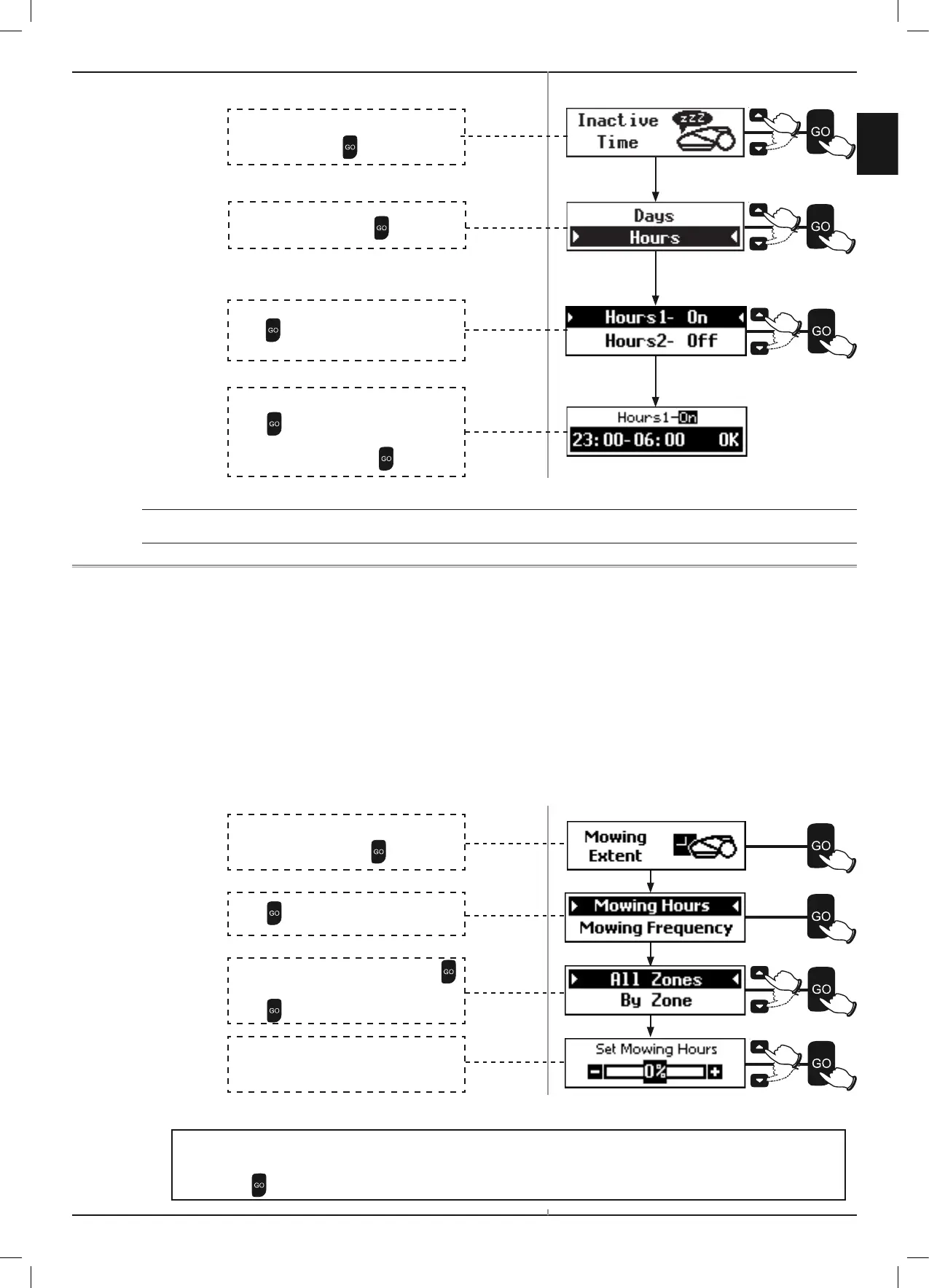 After Setting the Mowing Hours one of the following messages will be displayed:
