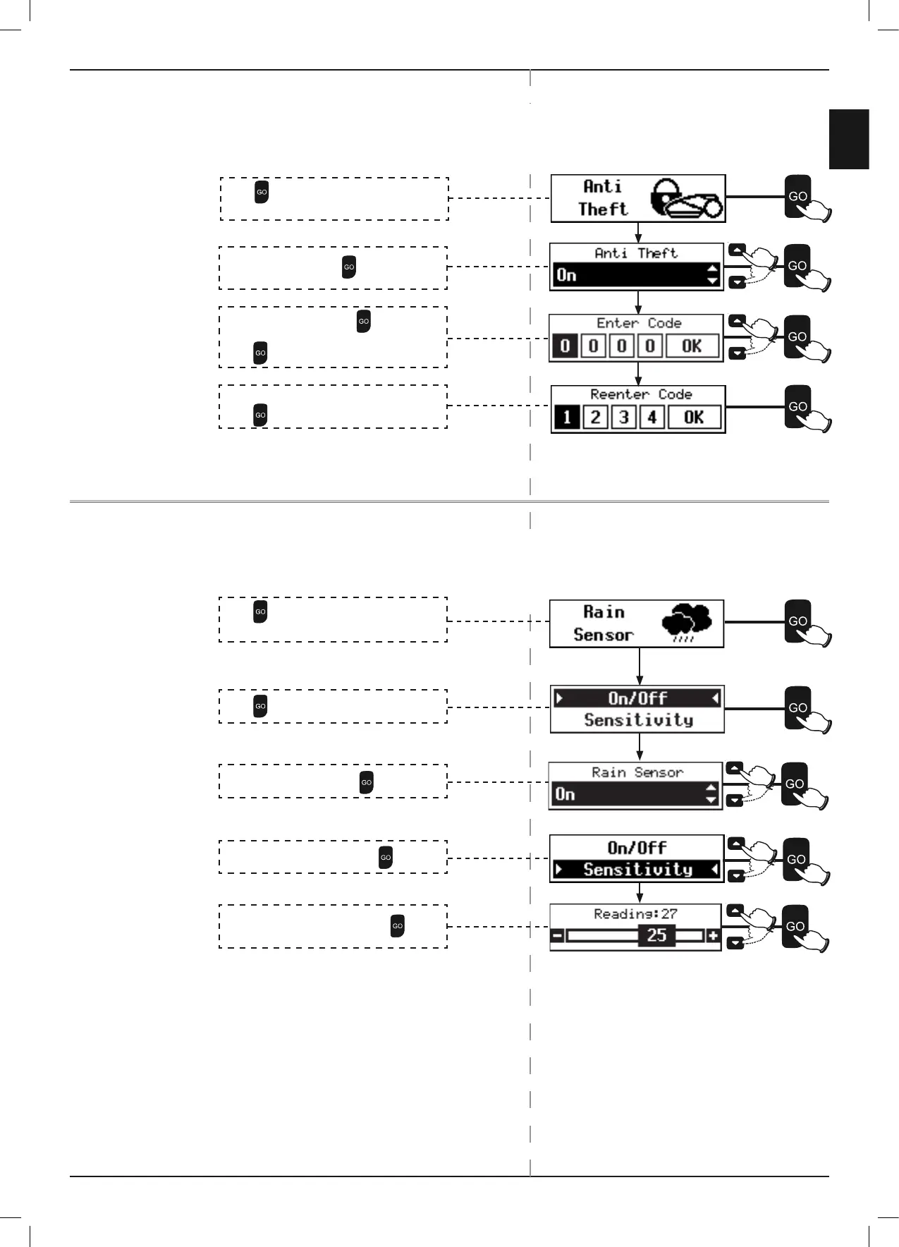 P To turn the Rain Sensor On or Off: