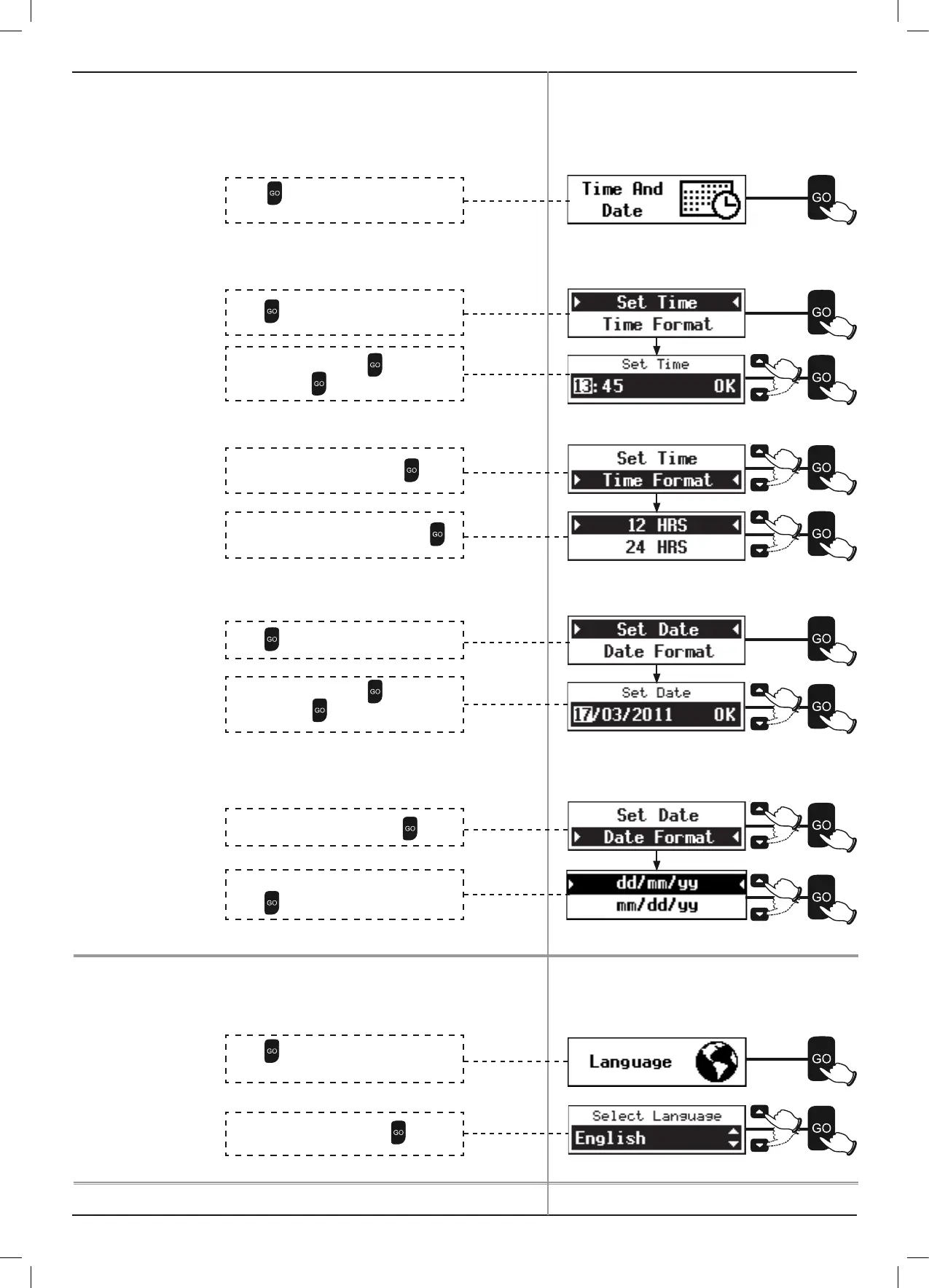 Press to select Time and Date from the