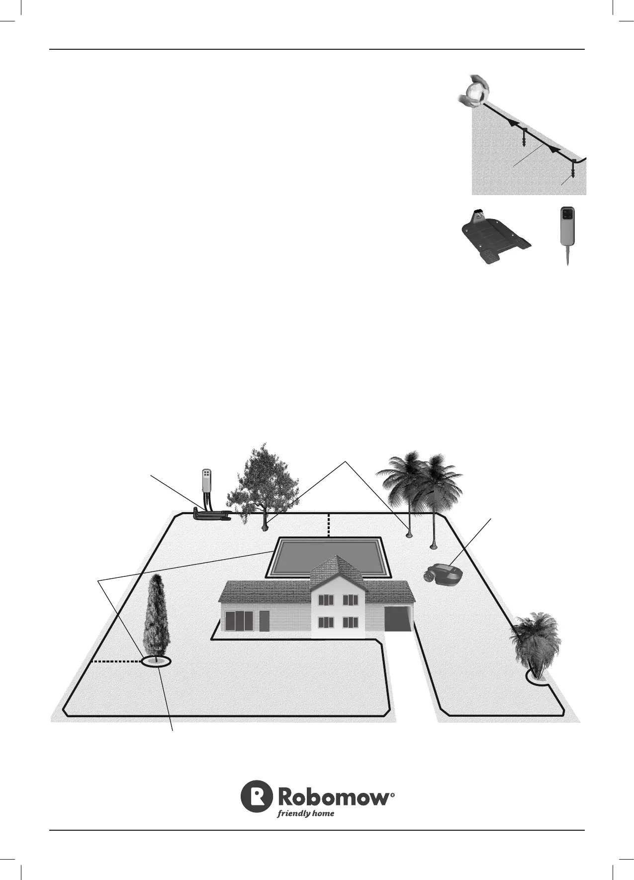 wall, visible only to Robomow. This signal keeps Robomow within the lawn boundaries, and prevents it from entering areas it