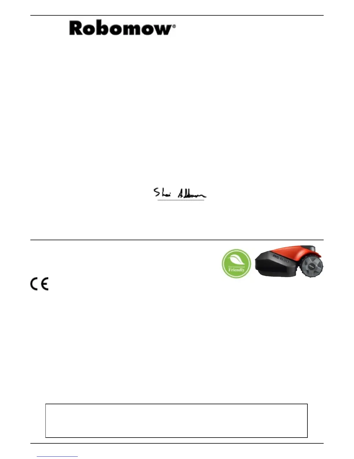 Robomower TS1000 - EU Declaration of Conformity; Manufacturer Details; Product Conformity; Technical File Representative