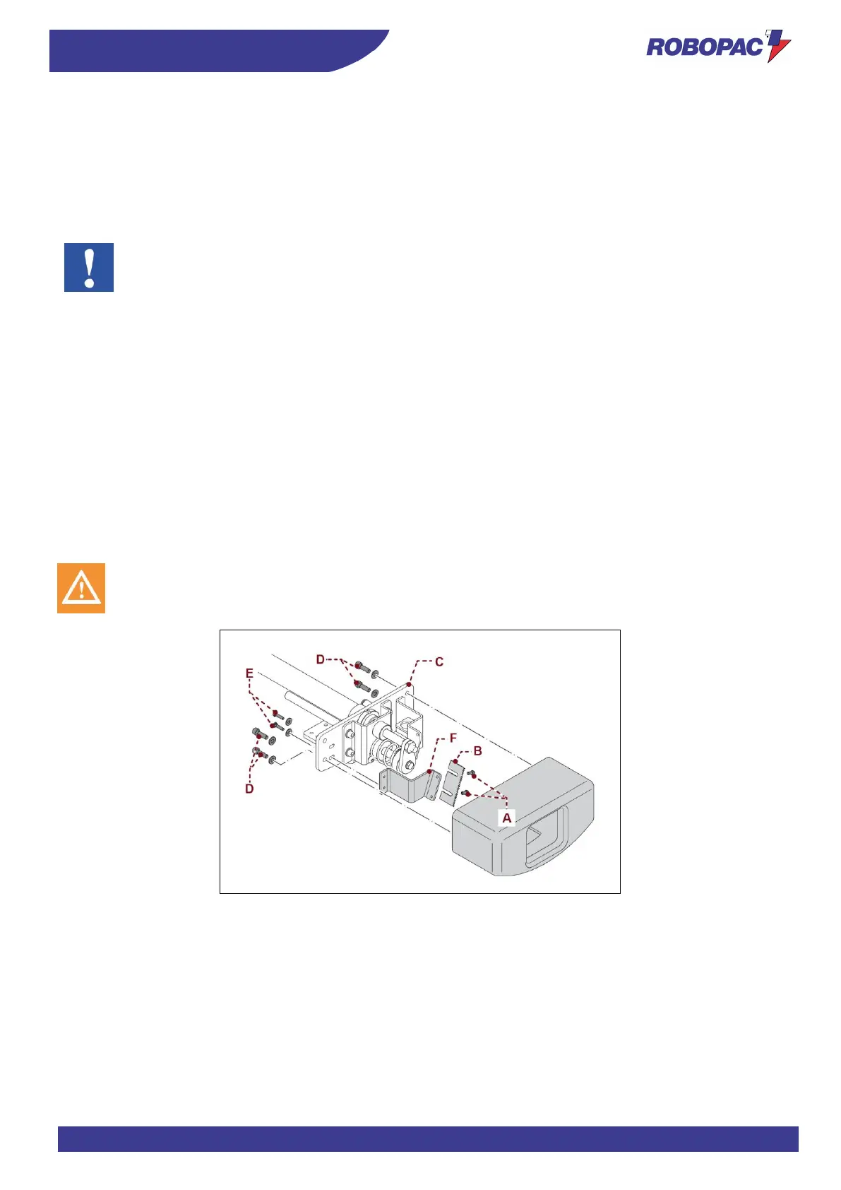 1. Remove the guard by removing the four screws (D) of the support (C).