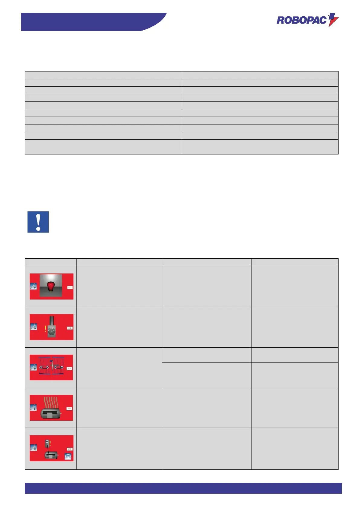The table lists the displayed messages, the type of problem, the causes and possible solutions.