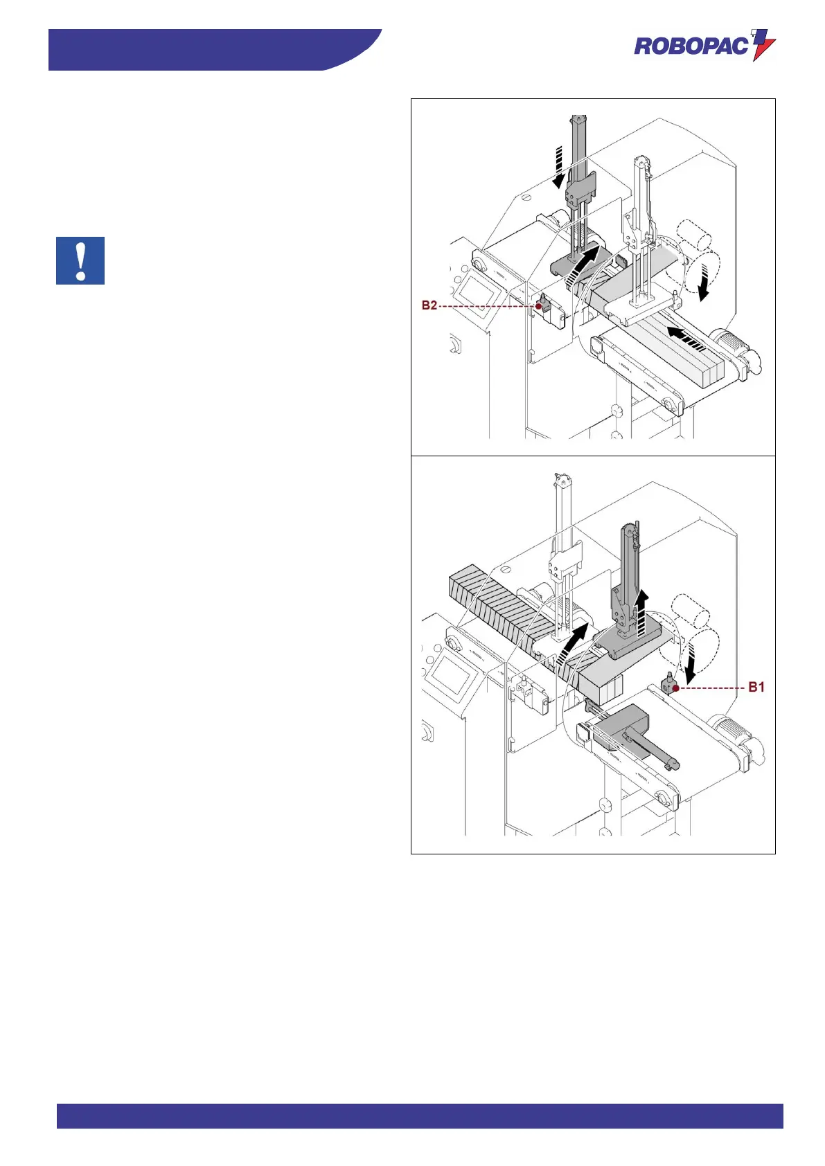 The product moves forward and engages photocell (B2),