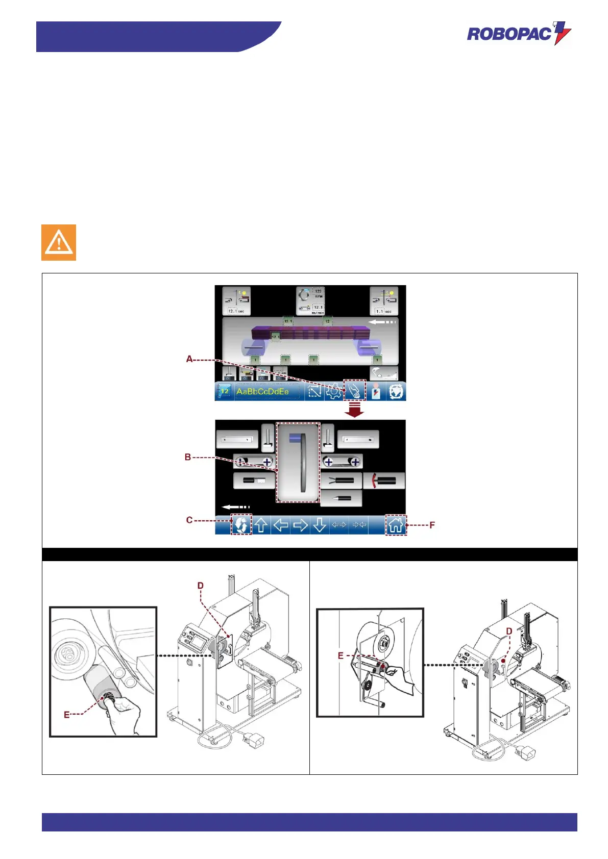 5. Use knob (E) on the roller with clutch to adjust film wrapping tension; the roller is equipped with mechanical