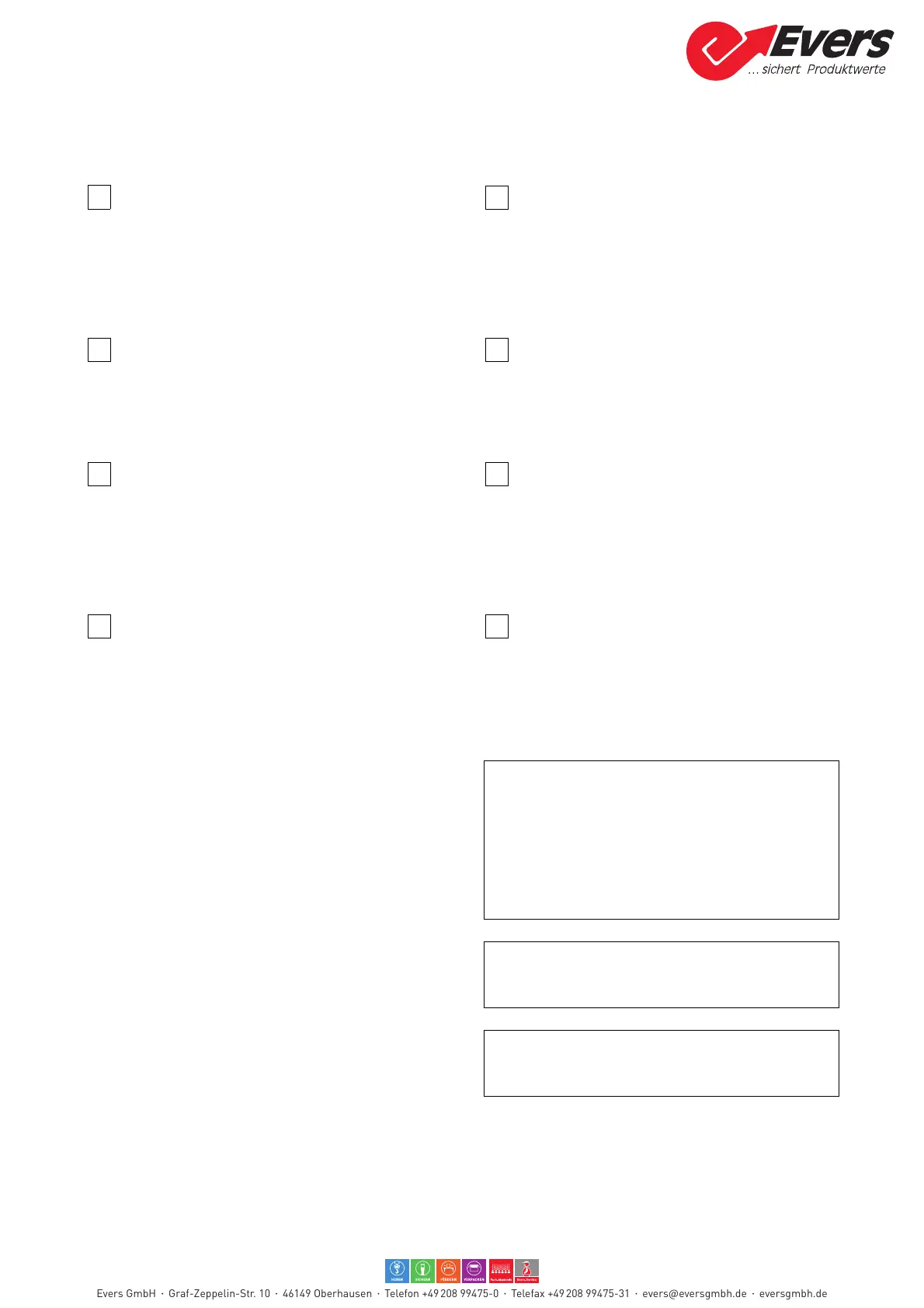 Evers GmbH Graf-Zeppelin-Str. 10 46149 Oberhausen Telefon +49 208 99475-0 Telefax +49 208 99475-31 evers@eversgmbh.de eversgmbh.de