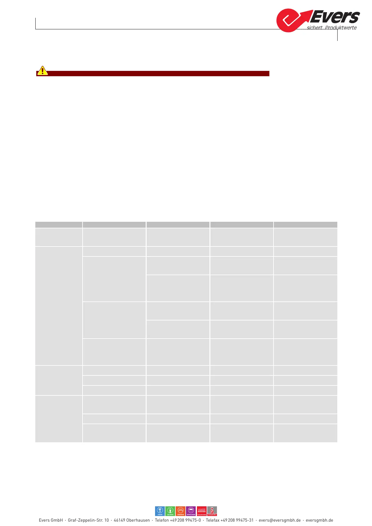 Evers GmbH Graf-Zeppelin-Str. 10 46149 Oberhausen Telefon +49 208 99475-0 Telefax +49 208 99475-31 evers@eversgmbh.de eversgmbh.de