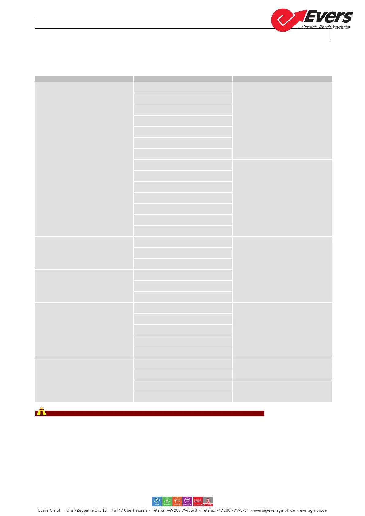 Evers GmbH Graf-Zeppelin-Str. 10 46149 Oberhausen Telefon +49 208 99475-0 Telefax +49 208 99475-31 evers@eversgmbh.de eversgmbh.de