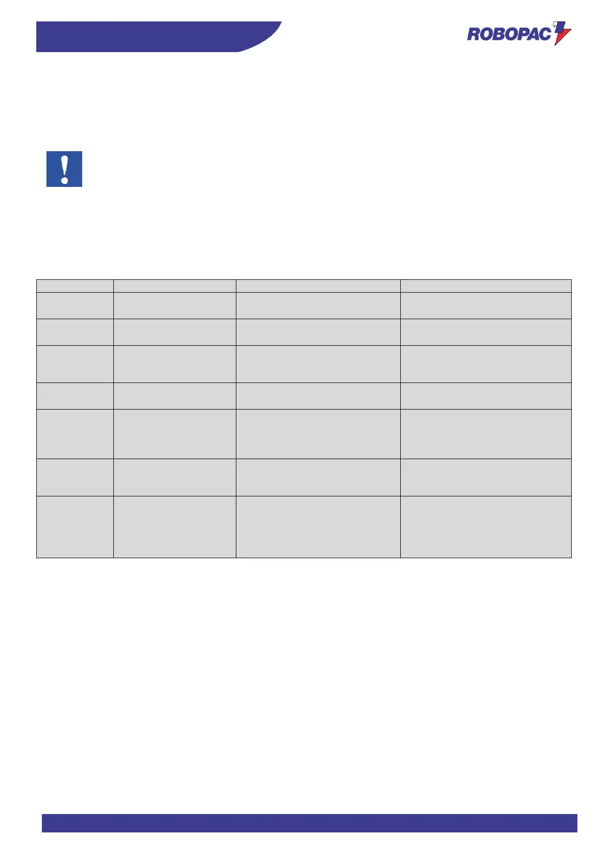The table lists the displayed messages, the type of problem, the causes and possible solutions.