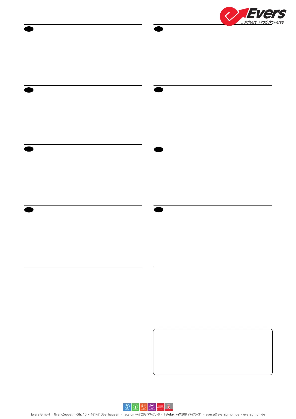 Evers GmbH Graf-Zeppelin-Str. 10 46149 Oberhausen Telefon +49 208 99475-0 Telefax +49 208 99475-31 evers@eversgmbh.de eversgmbh.de