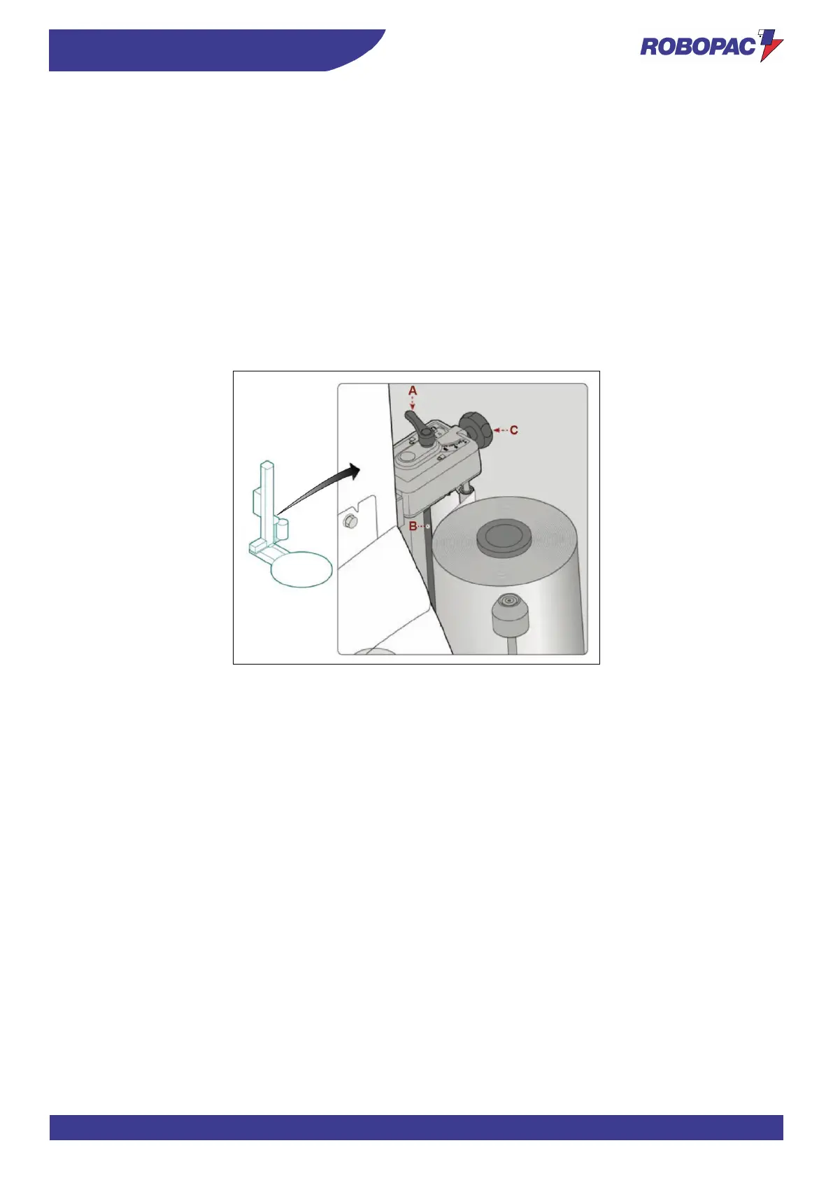2. Use the handwheel (C) to adjust the braking action of the stretching roller (B) which determines the film