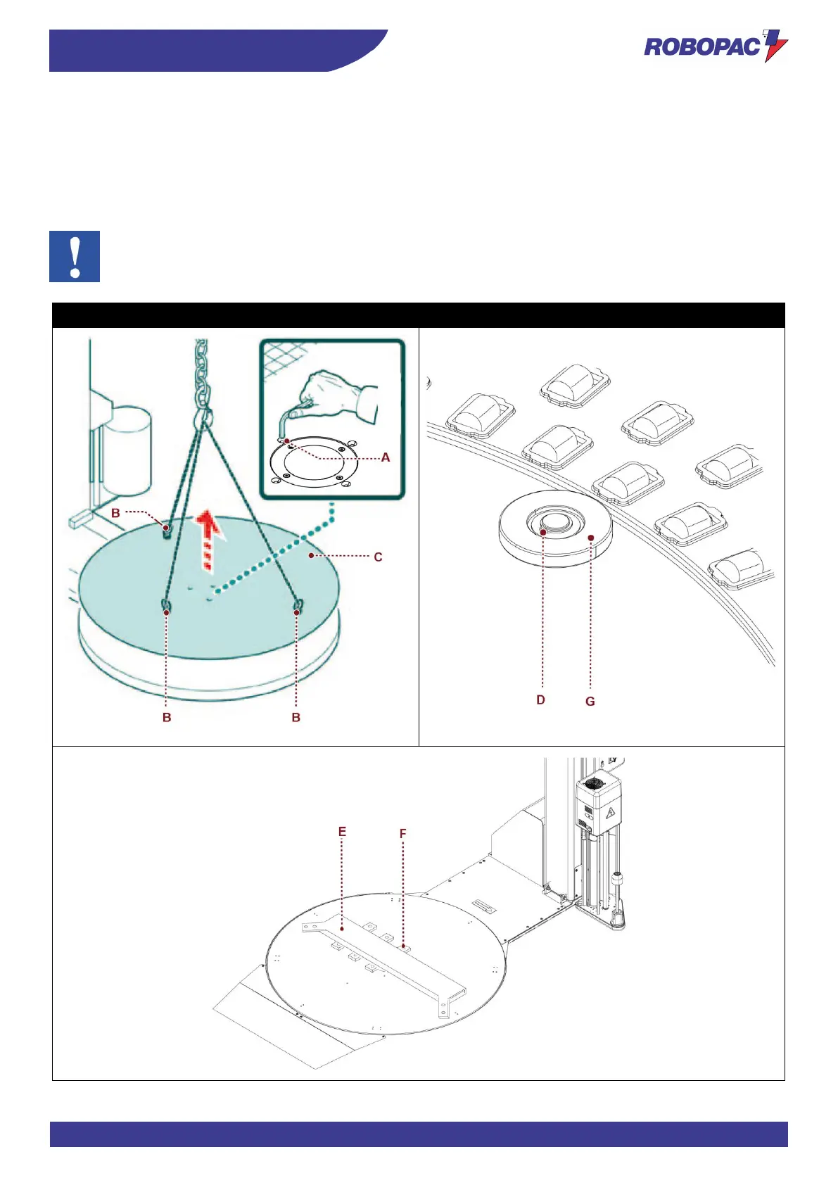 Should it not be possible to lift the rotary table using the eyebolts as indicated in point 2, position the