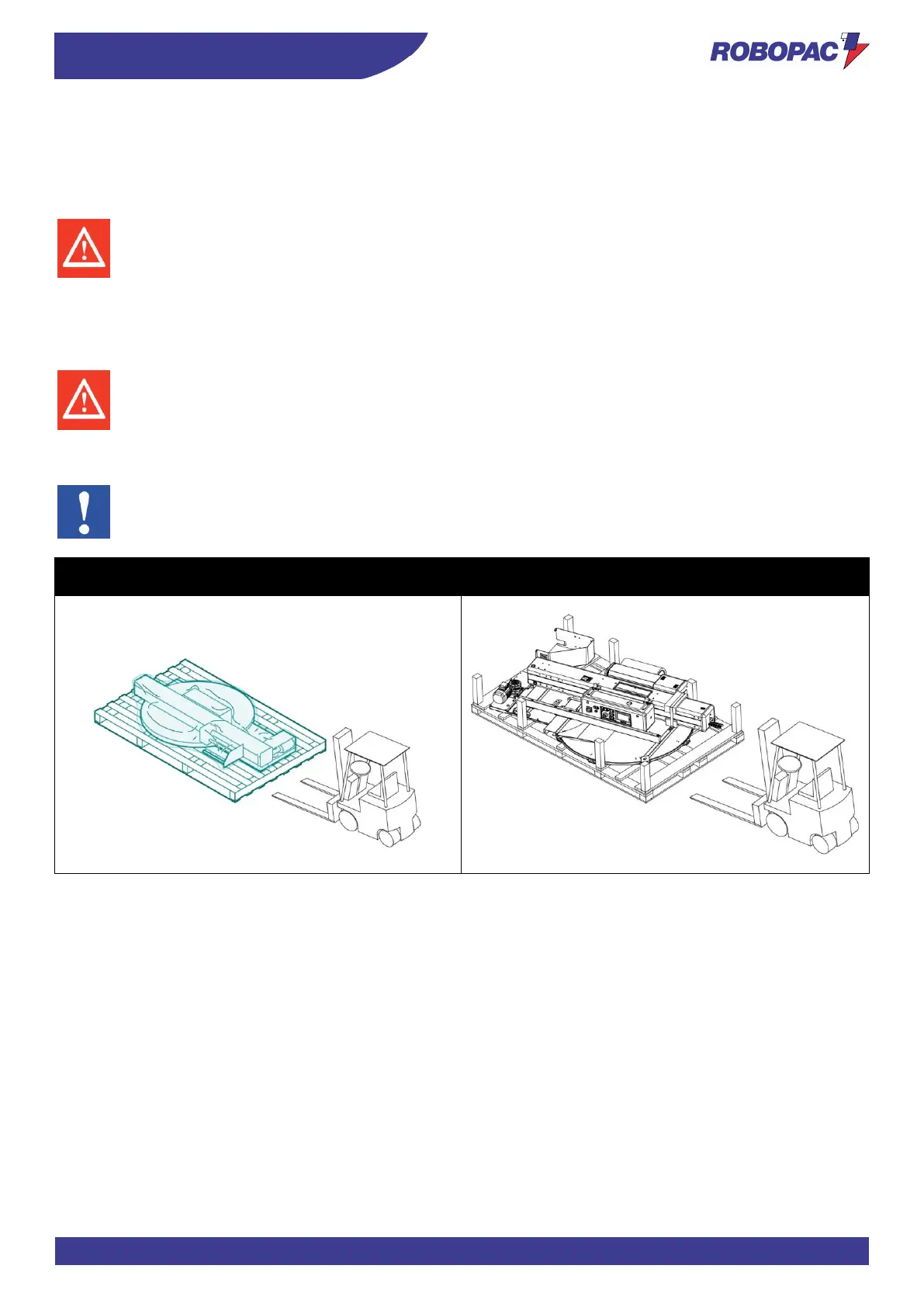 Insert the forklift truck forks in the specially designed spaces provided in the base.