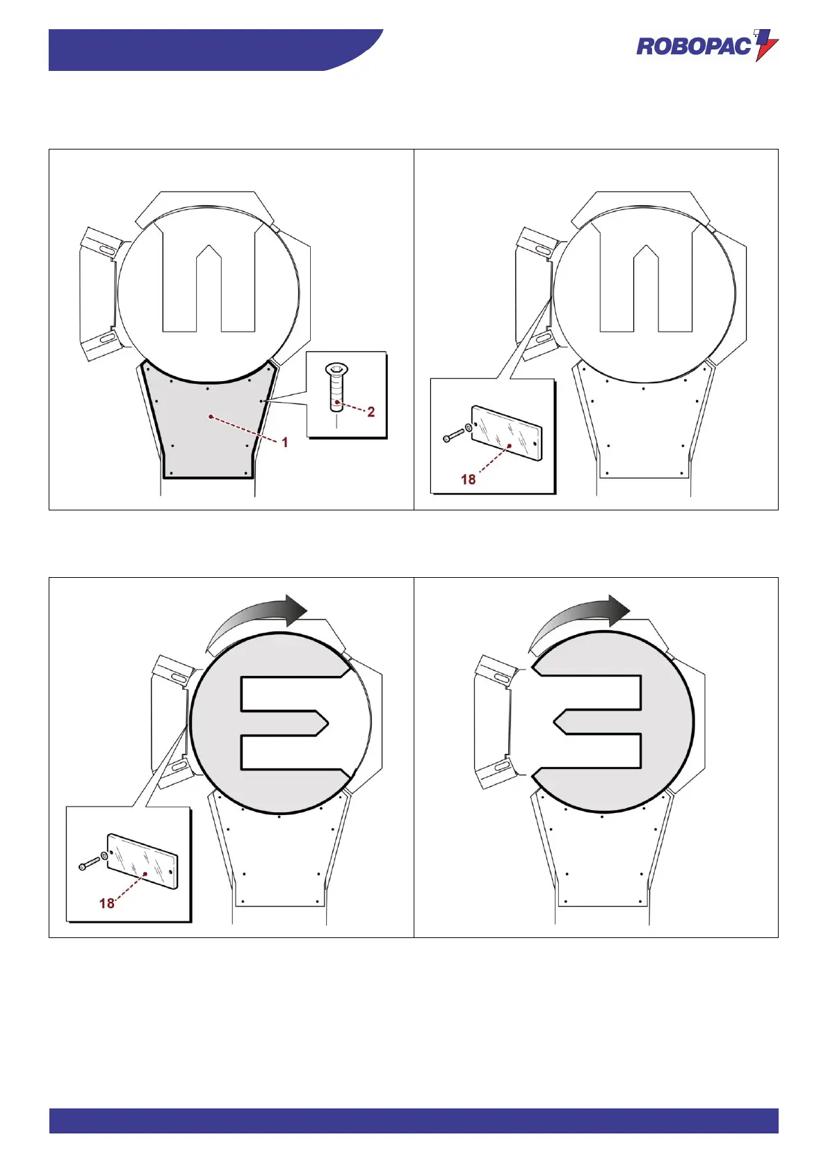O. Turn the plate clockwise until the reflector (18) is positioned on the opposite side of the loading area.