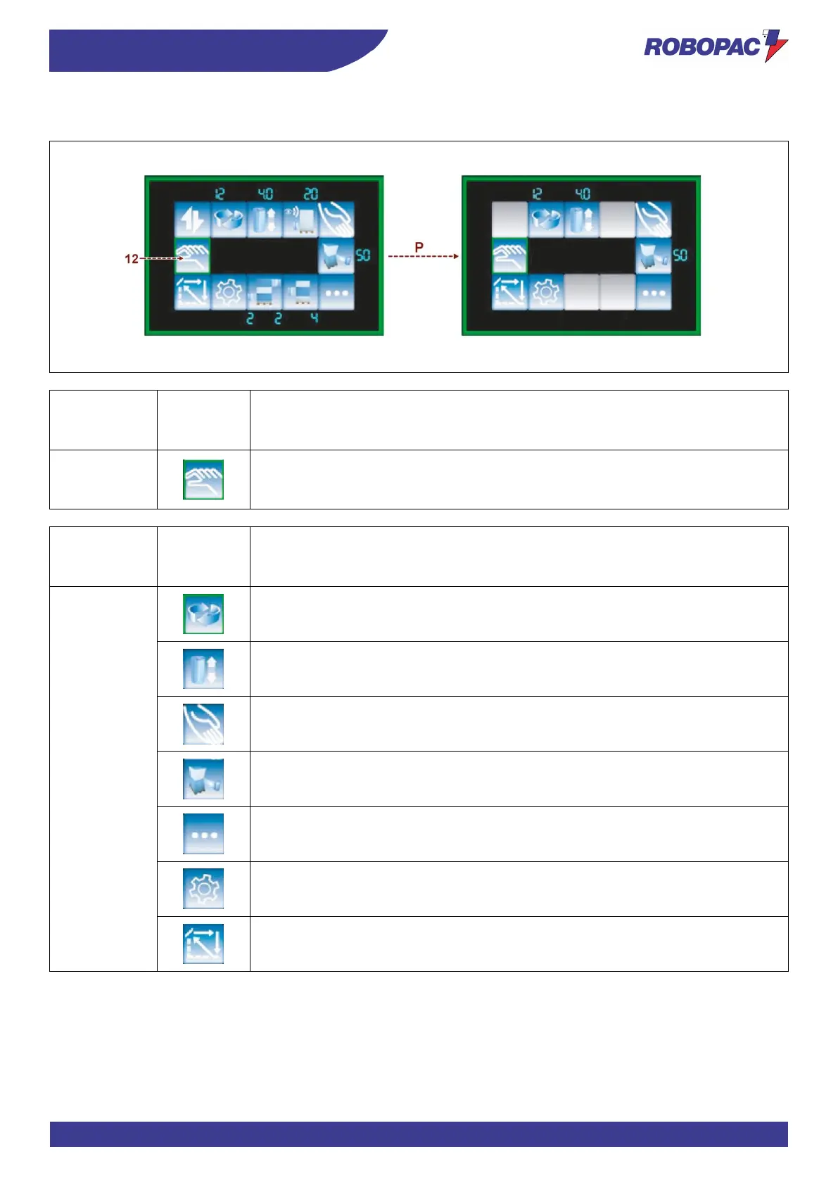 Press the button (12) to access the manual cycle menu Home page