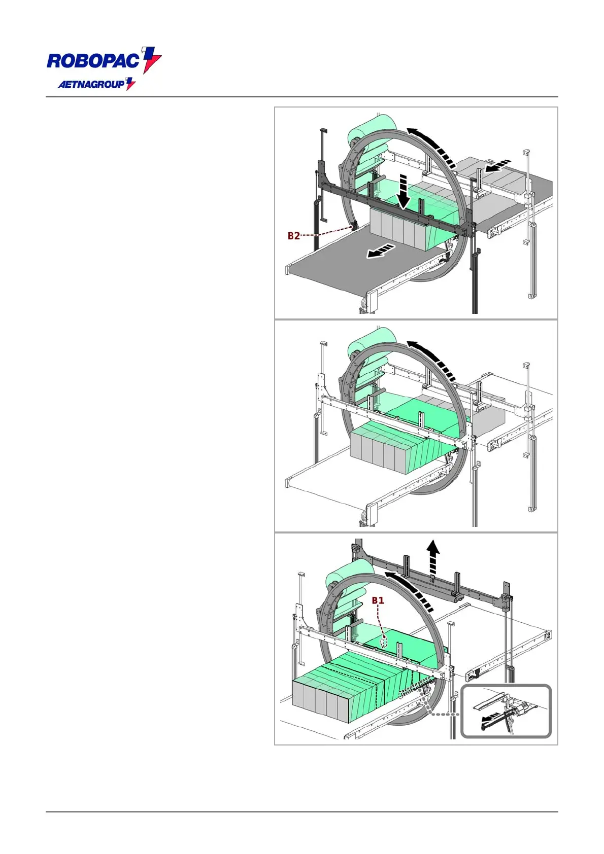 conveyor stops, the rotating ring starts