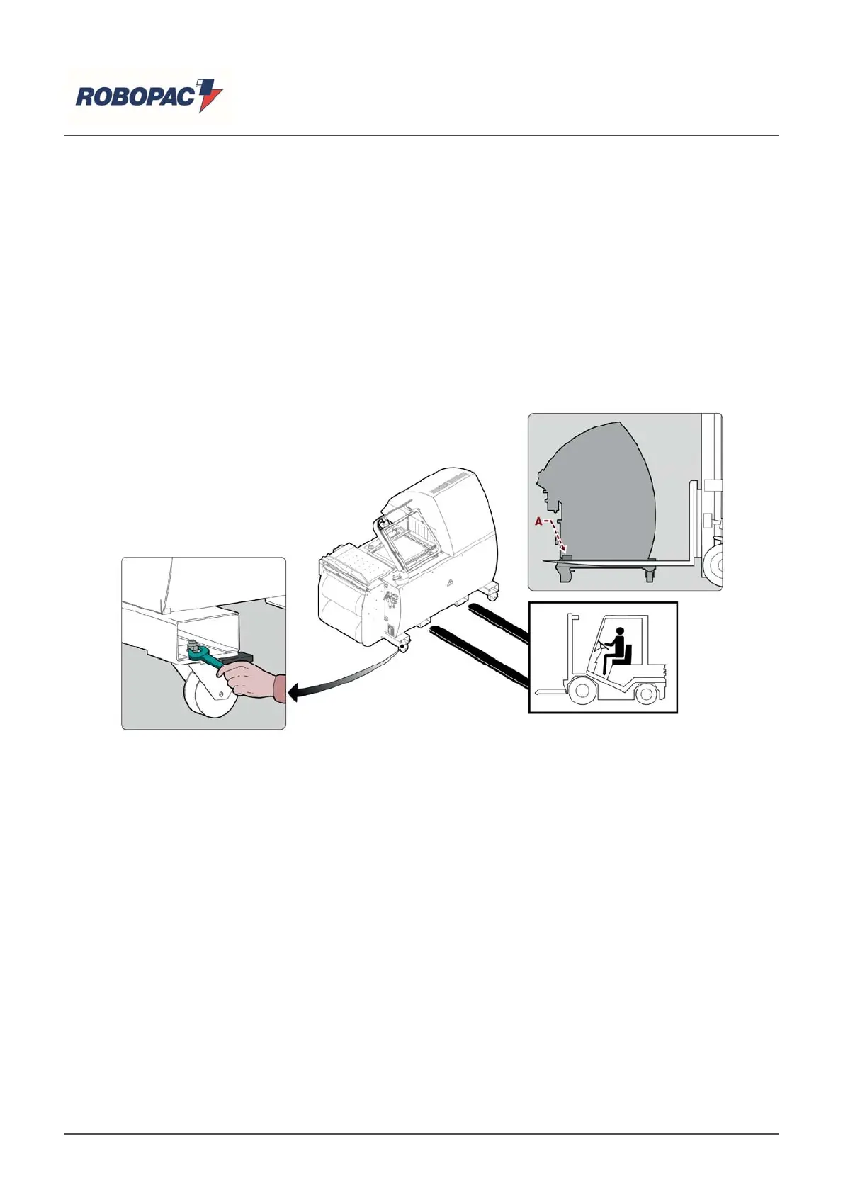 The handling of the machine with the use of the fork device must be carried out ONLY with the (A) shipping