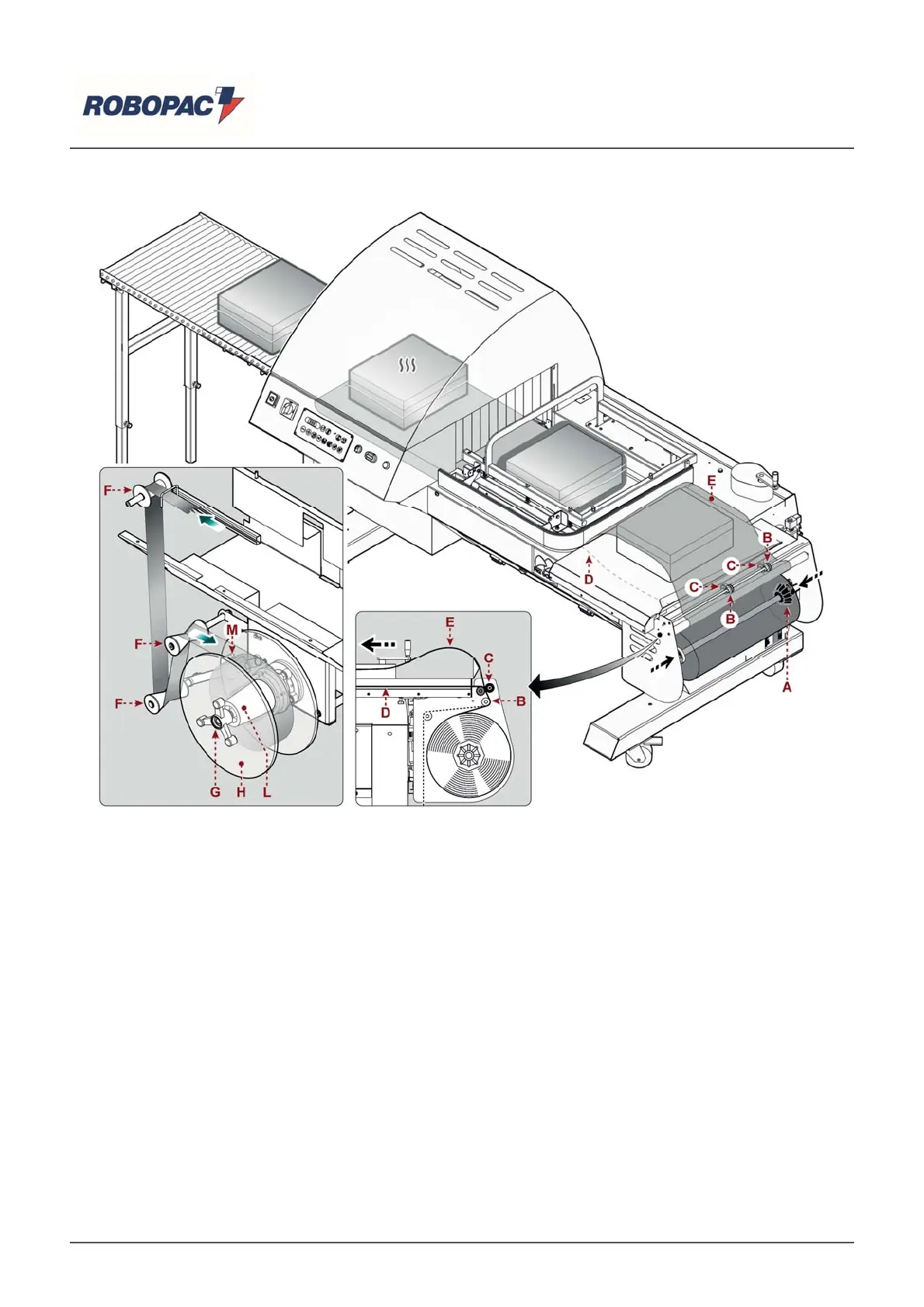 (B) idler roller and the (C)