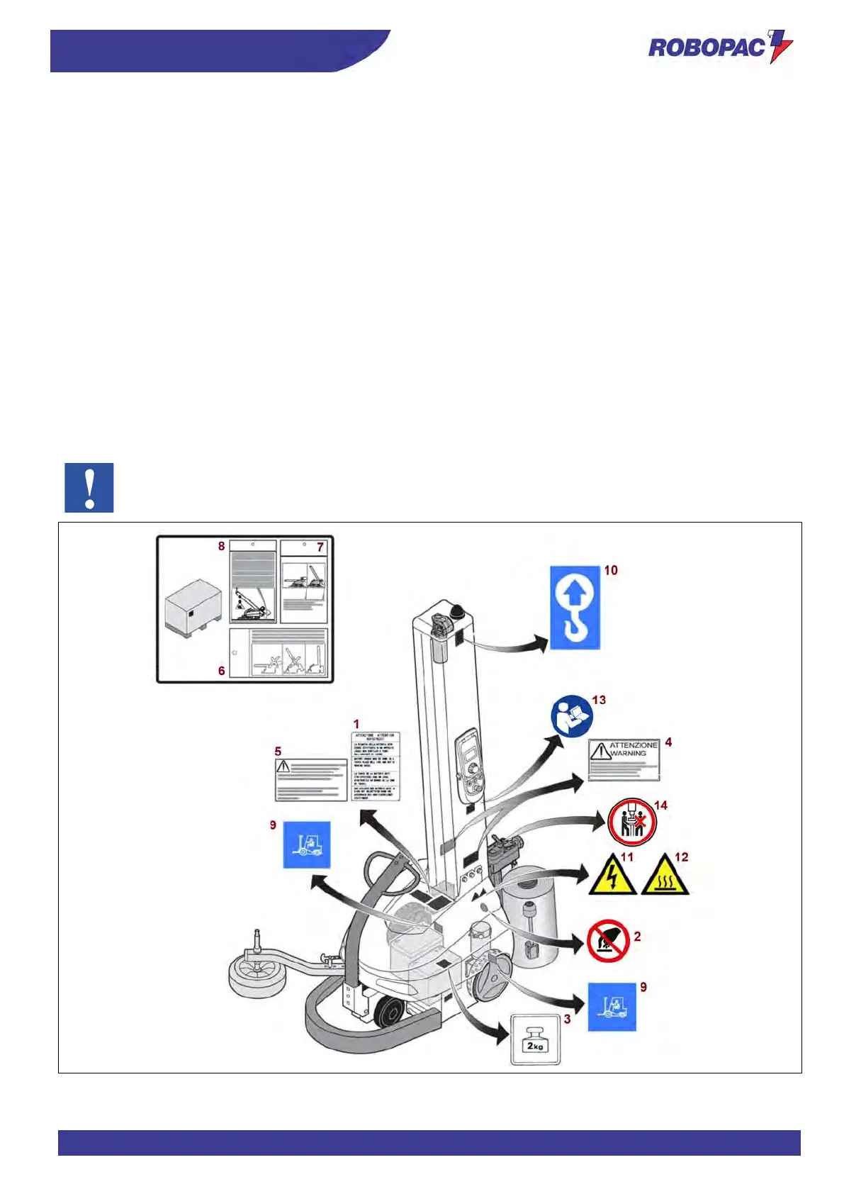 Information sign (applied in transport phase): it indicates how to remove the pallet from the machine.