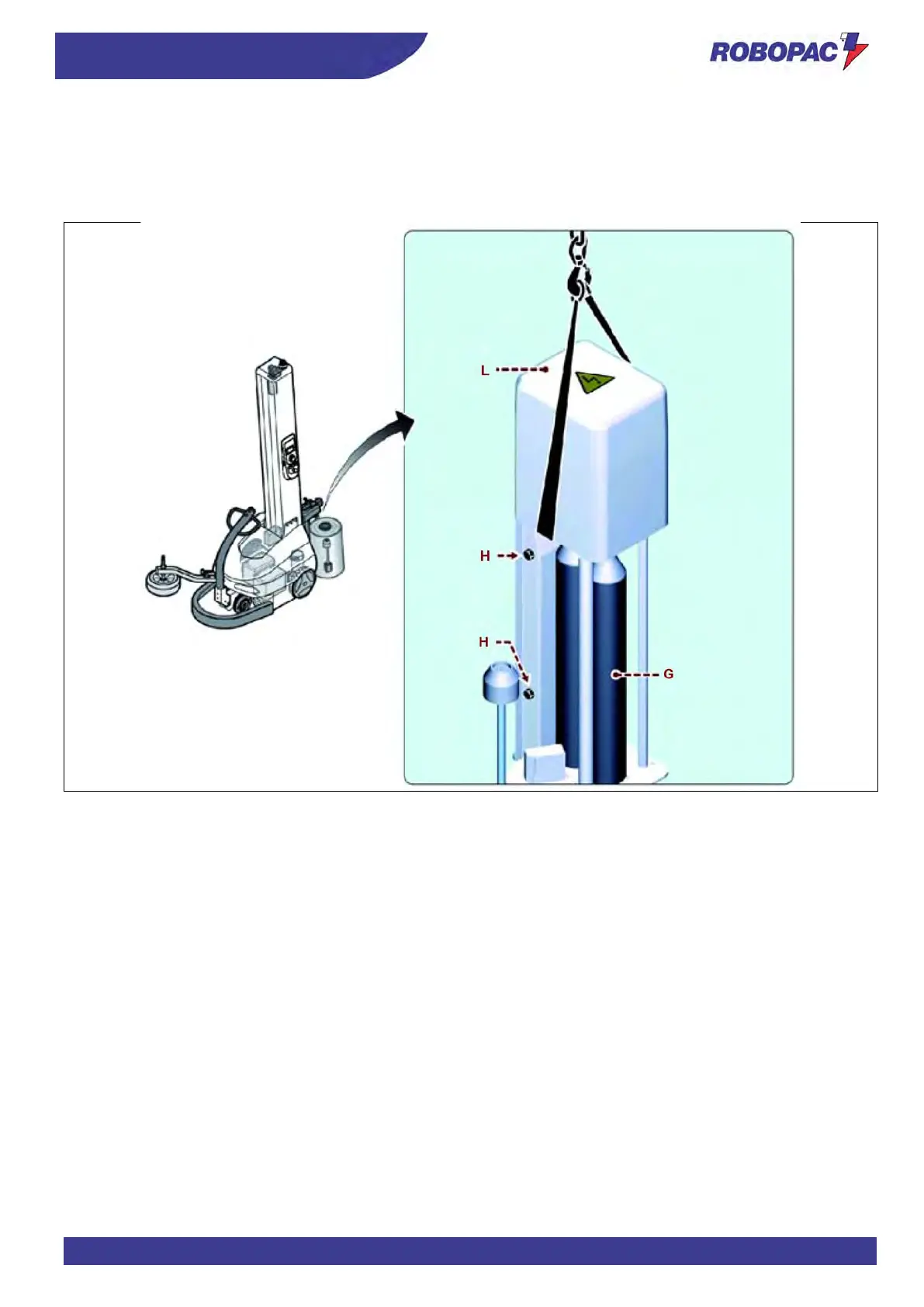 Lift the spool carriage (G), move it closer to the column and fasten it using the screws (H).
