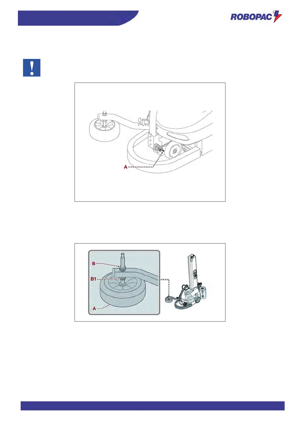 To obtain different heights, remove the nut (B) and fit the wheel (A) from the arm upper side.