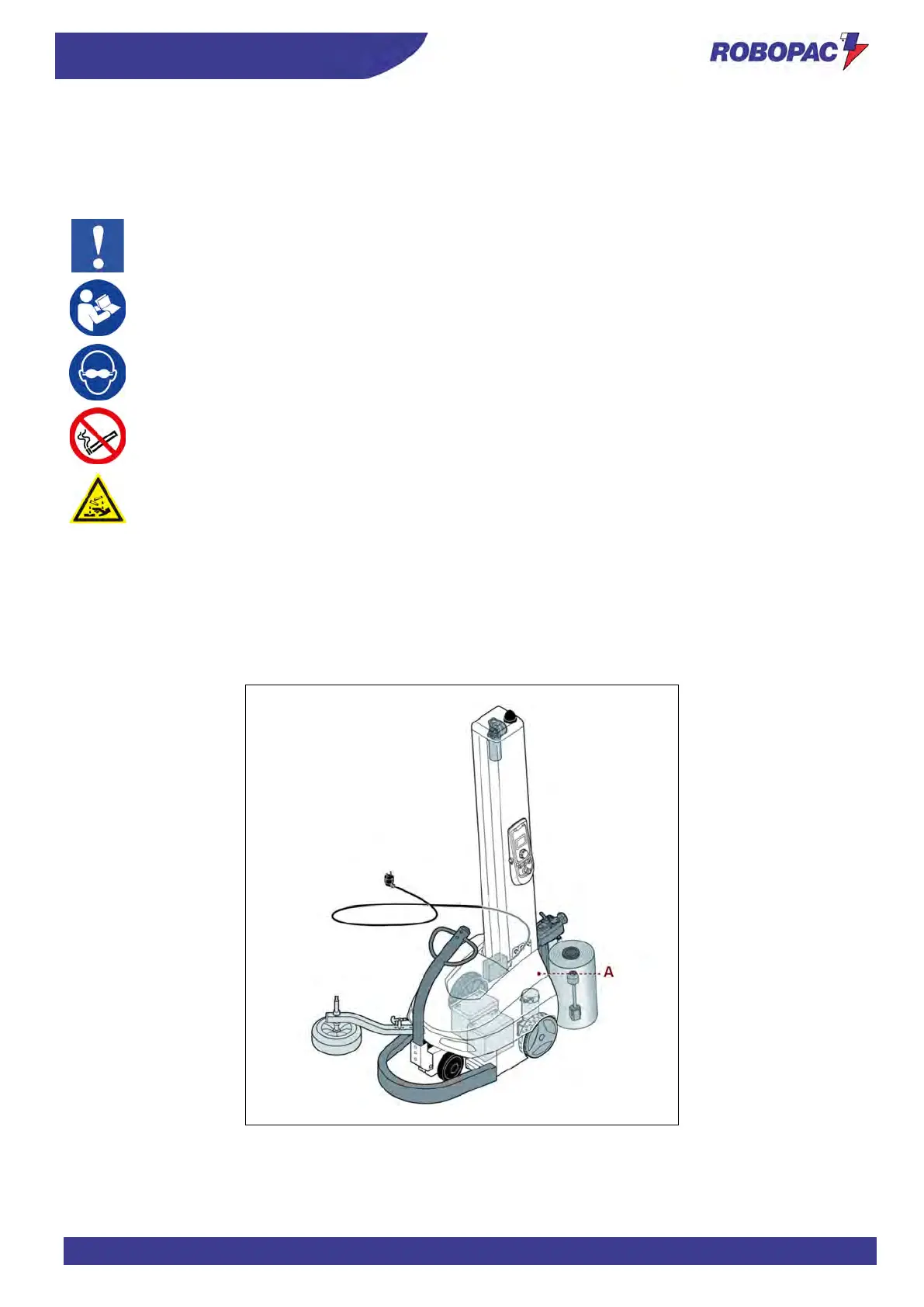 The current wrapping cycle is completed and then the display shows the alarm E90‑battery low (flat battery).