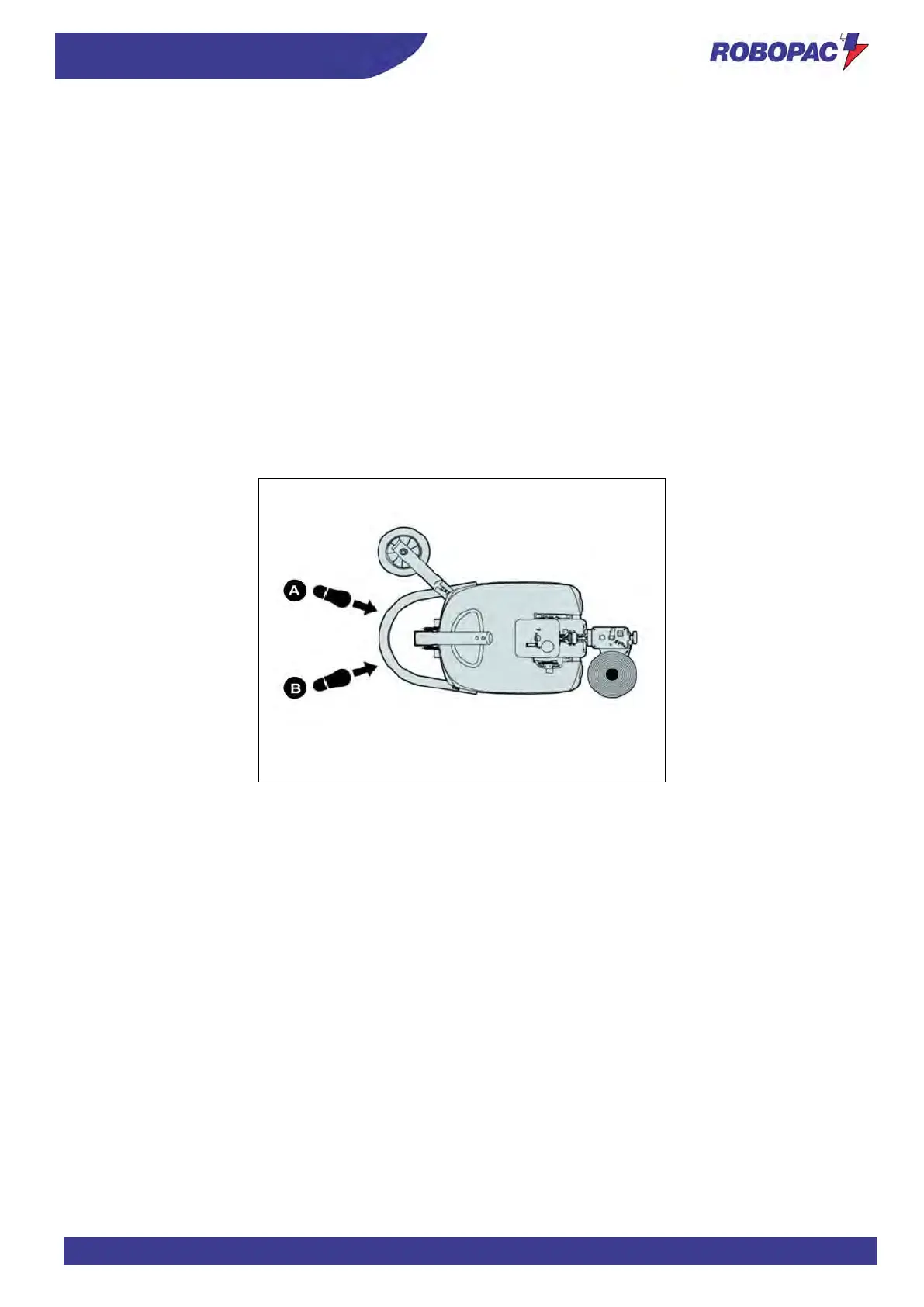 1. Apply a strong pressure with your foot on the “emergency bumper” sensitive edge, first on point (A) and then on