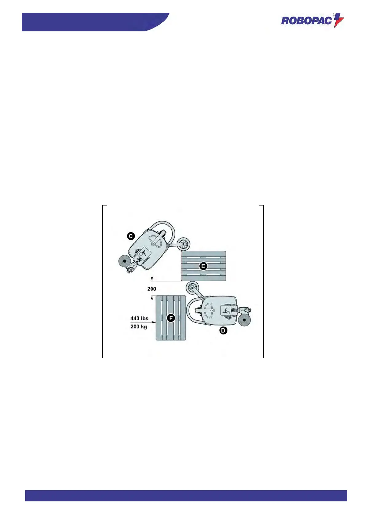 1. Move the machine, in manual mode, and place it near a load to be wrapped (E) in the position (C).