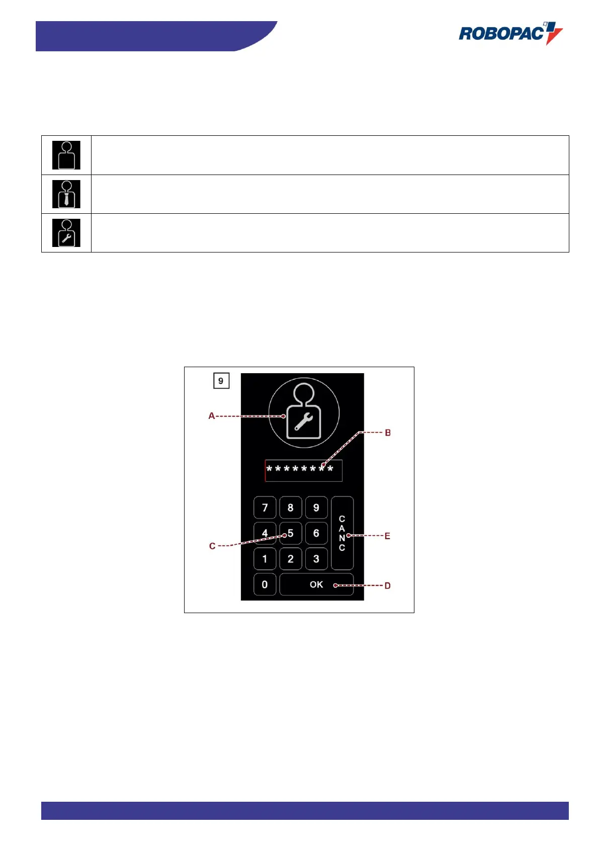 Icon (A2): it is used to select the “machine operator” user.