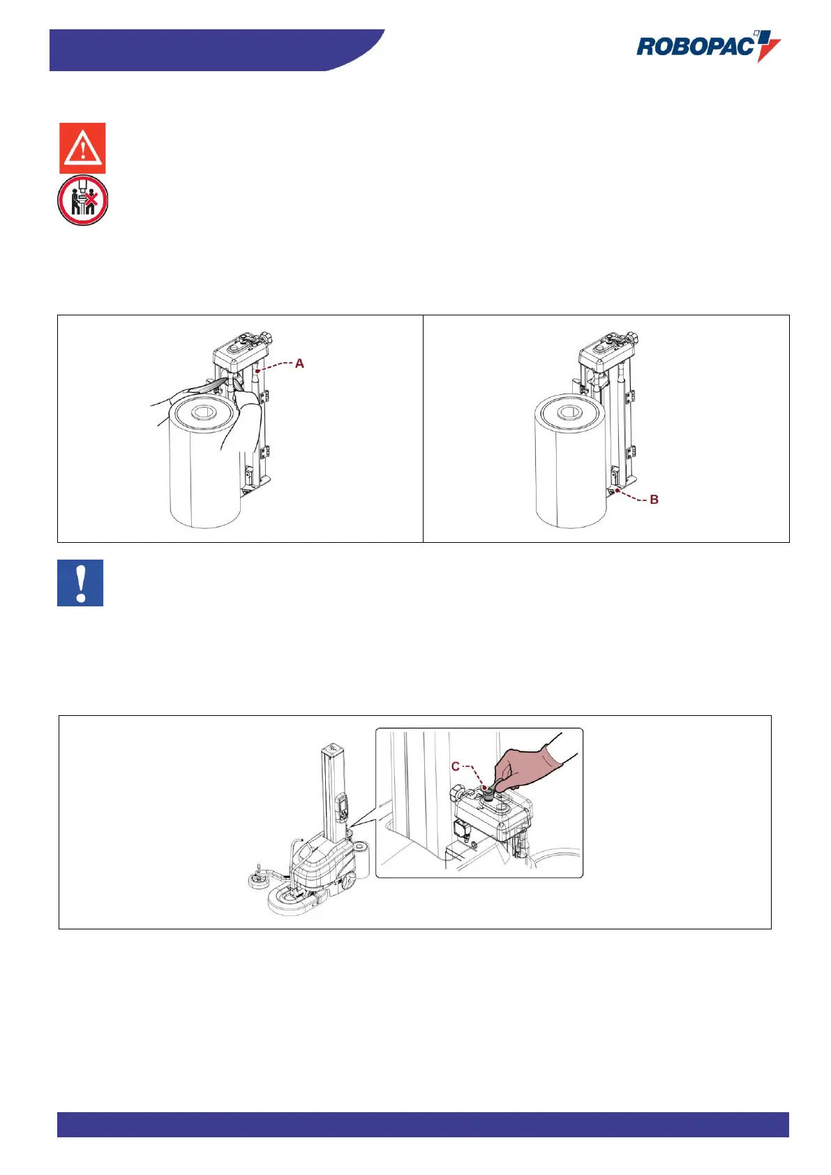 The operator must insert the film inside the rollers by hand, making it pass through the roller cone area (A),