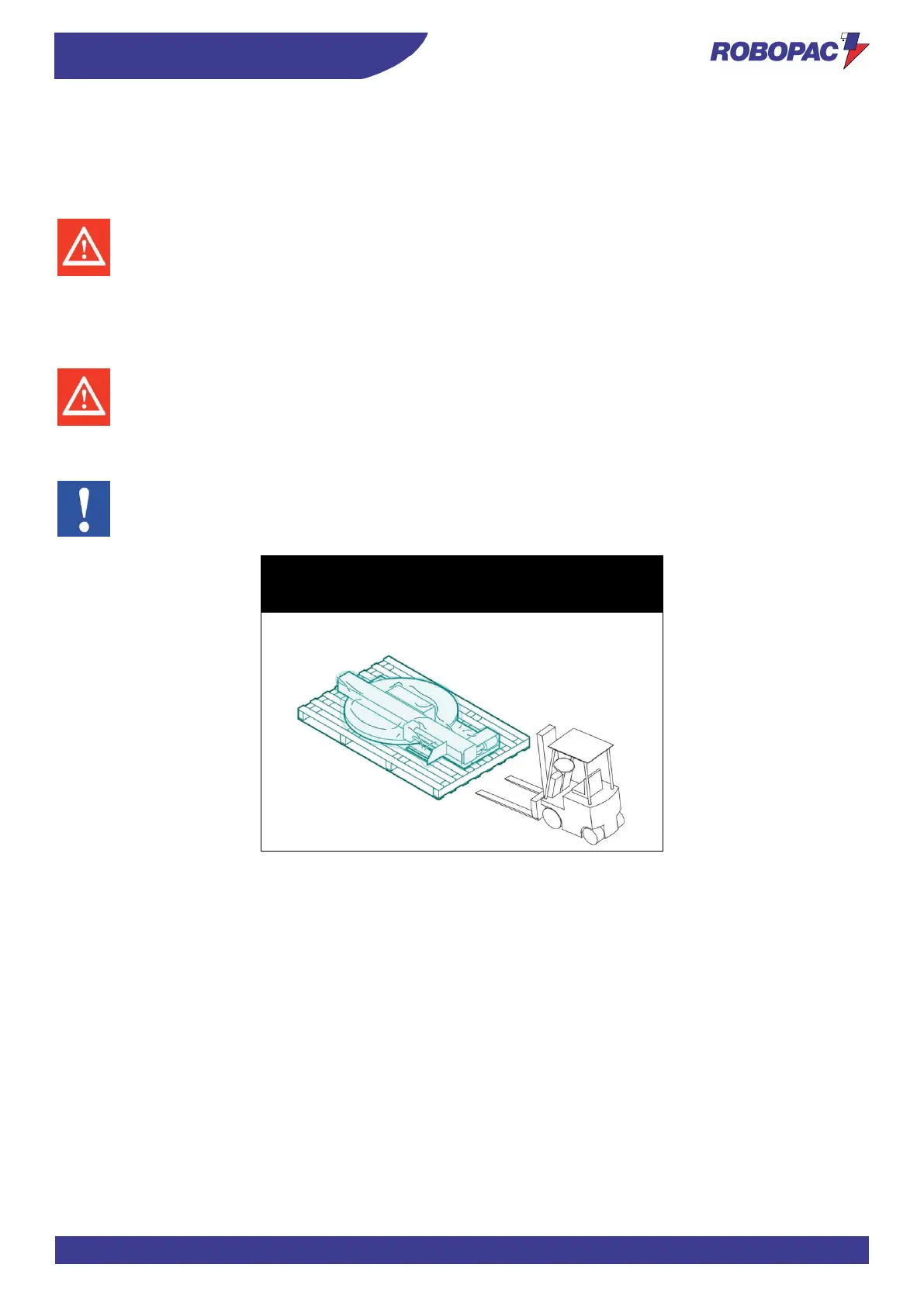 Insert the forklift truck forks in the specially designed spaces provided in the base.