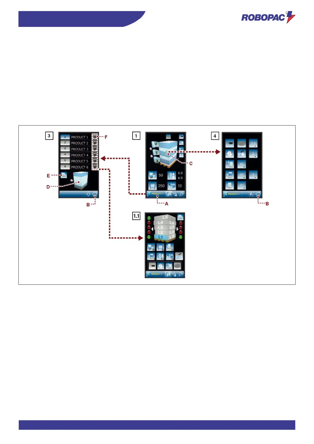 The area (D) displays the preview of the selected pallet wrapping cycle.