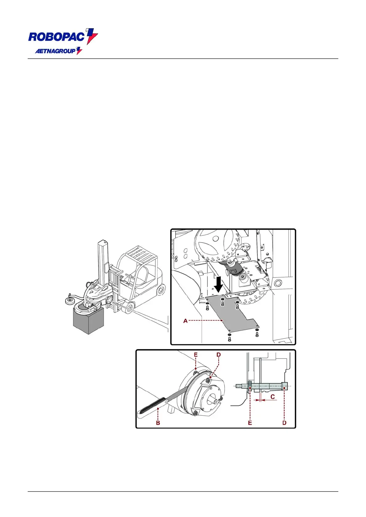 6. Adjust the distance (C) between the magnet and the flange using the screw (D) until you feel a slight