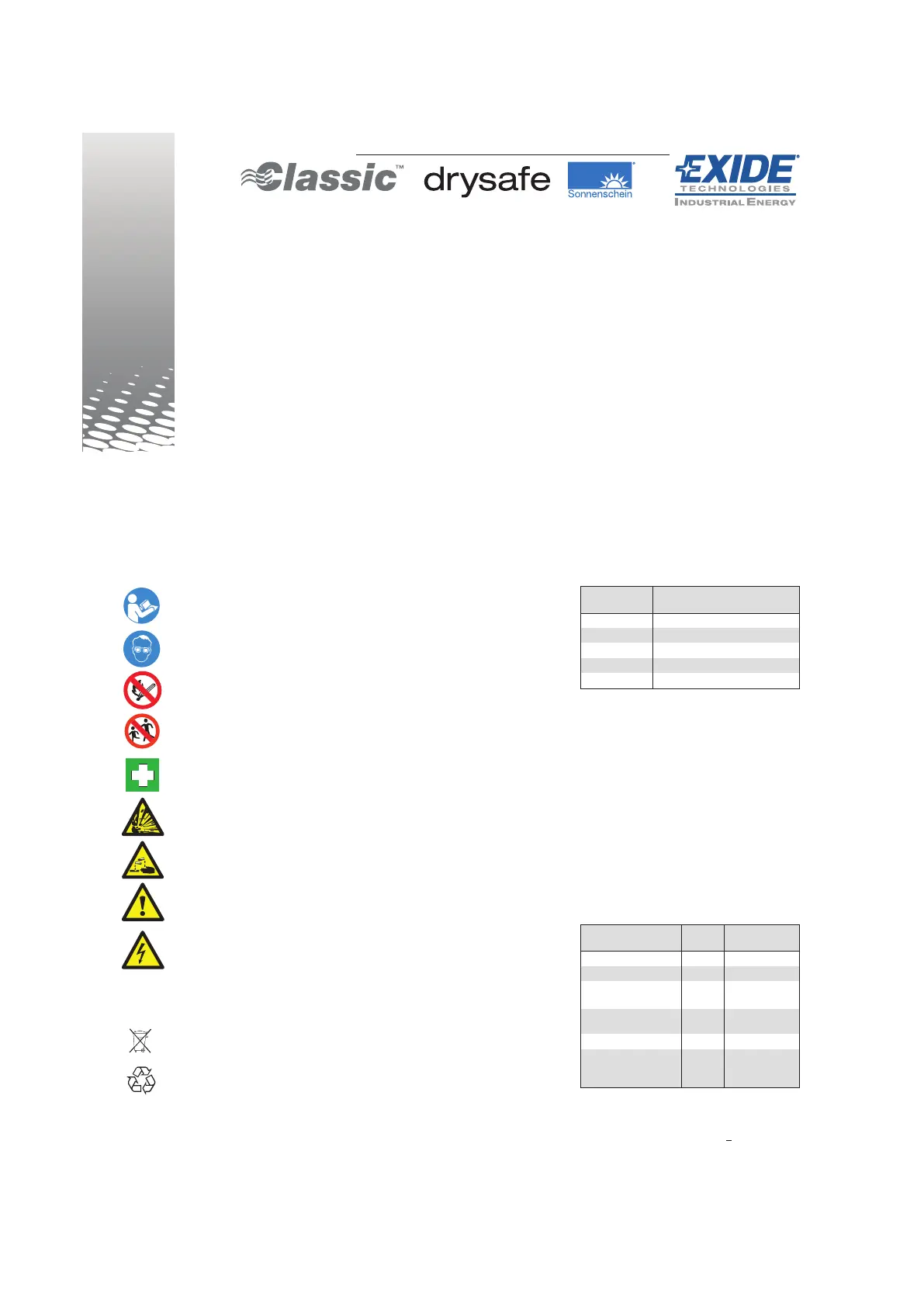 hazards from electric current, from explosion of electrolytic gases and, in case of the cell container is damaged, from the