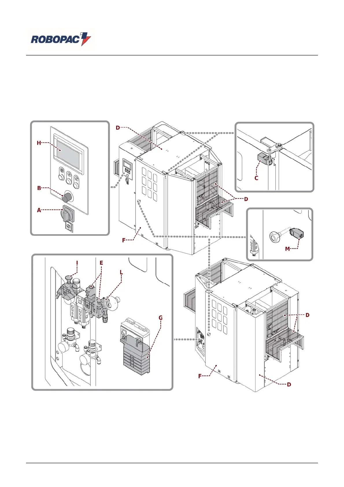 E) General exhaust solenoid valve: it closes the input of the compressed air, when the machine is not